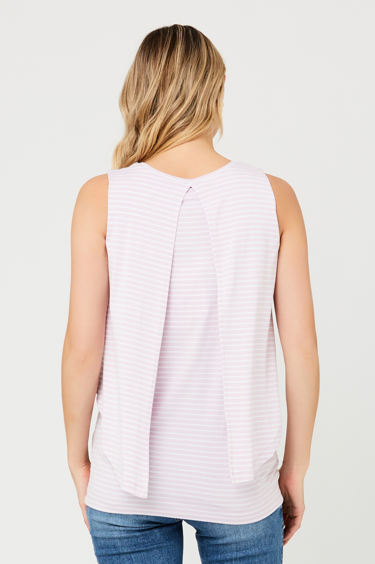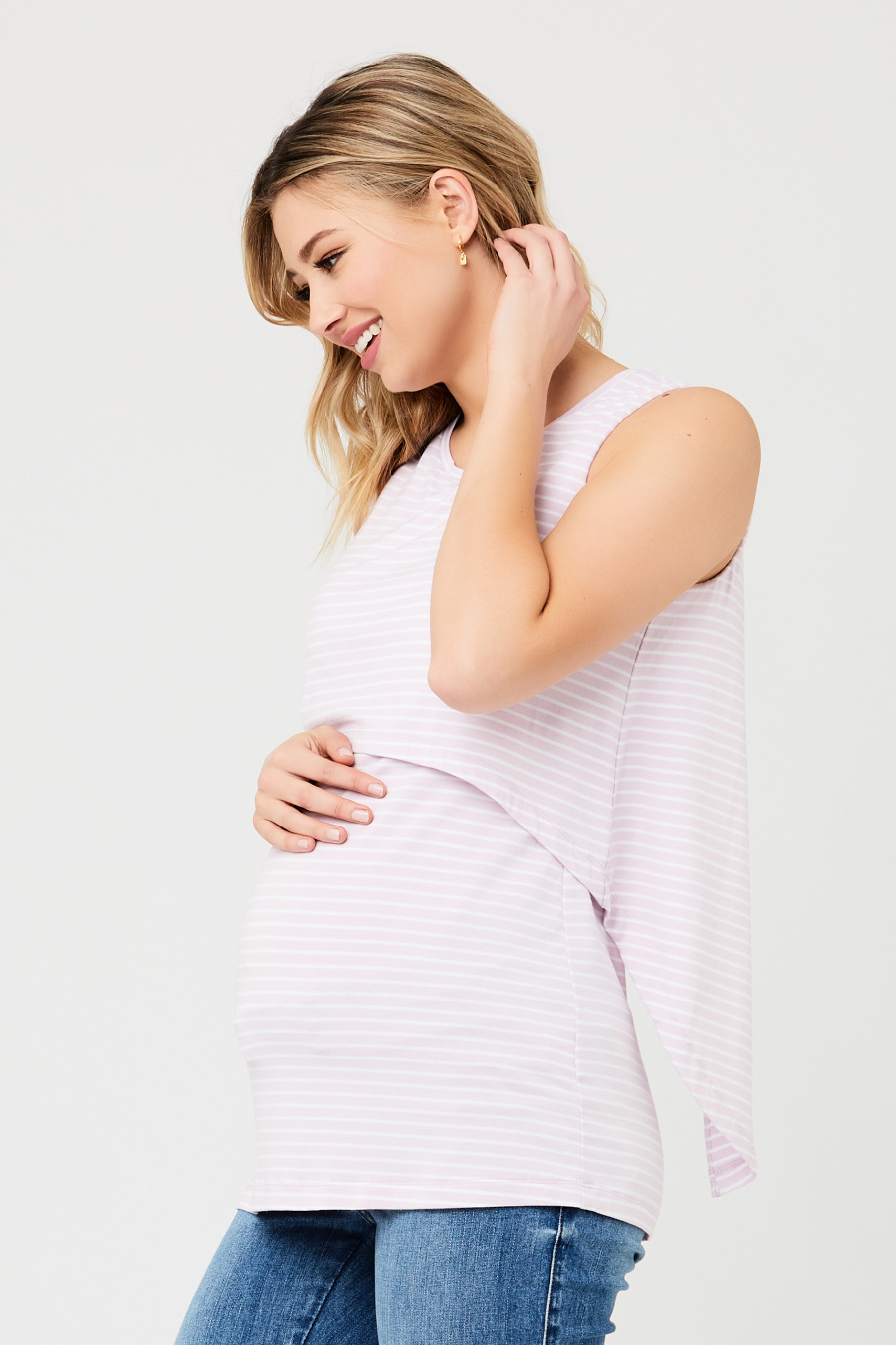 Umstands- und Stilltop in doppellagigem, luftigem Design mit geschlitzter Rückenpartie und coolem Streifen-Muster. Unter der oberen Stofflage befindet sich ein diskreter Stillzugang, so dass du das Shirt nach der Geburt ganz einfach weiter tragen kannst. In der Schwangerschaft hat dein Bauch garantiert genügend Platz. Farbe: weiß/flieder