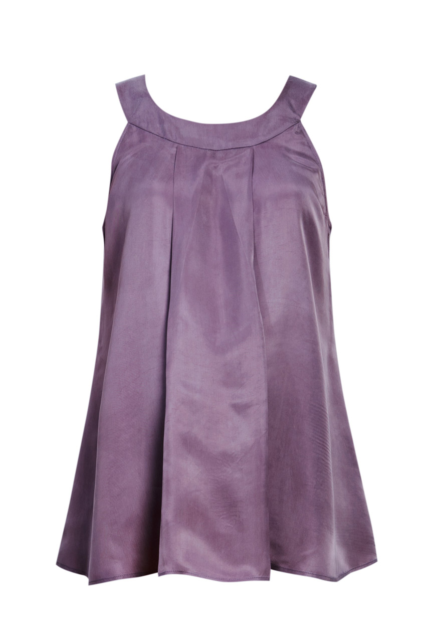 Luftig geschnittenes Umstandstop vorne mit Faltenwurf und breiten Trägern, die in den Rundhalsausschnitt übergehen. Farbe: lavendel