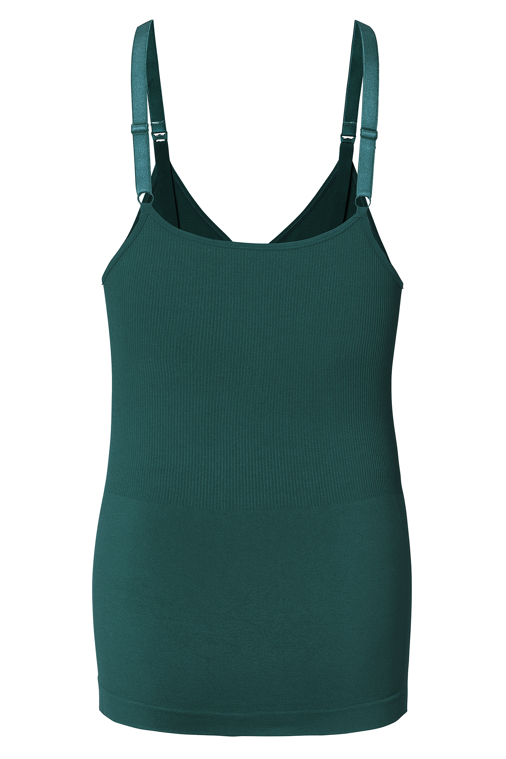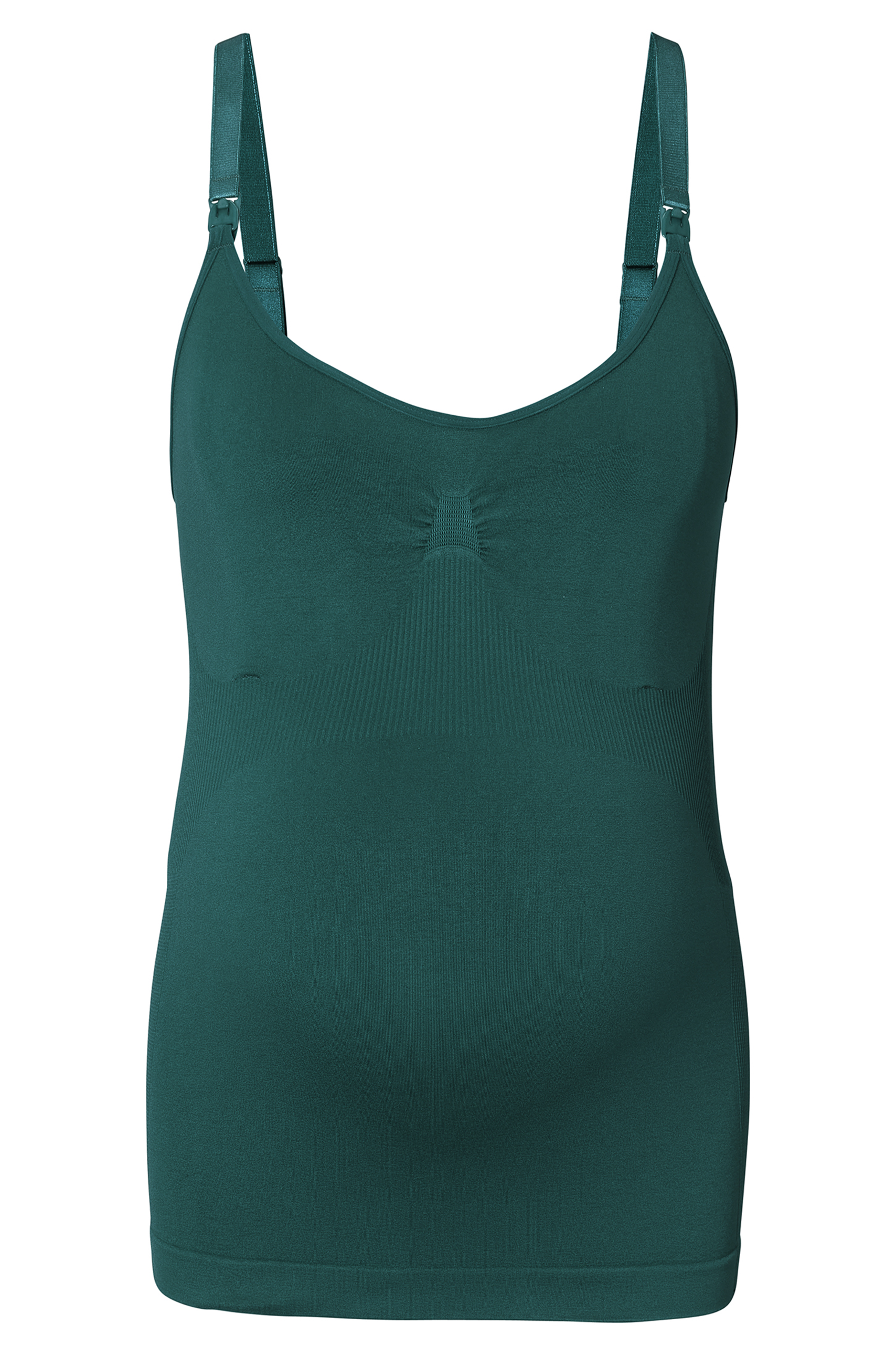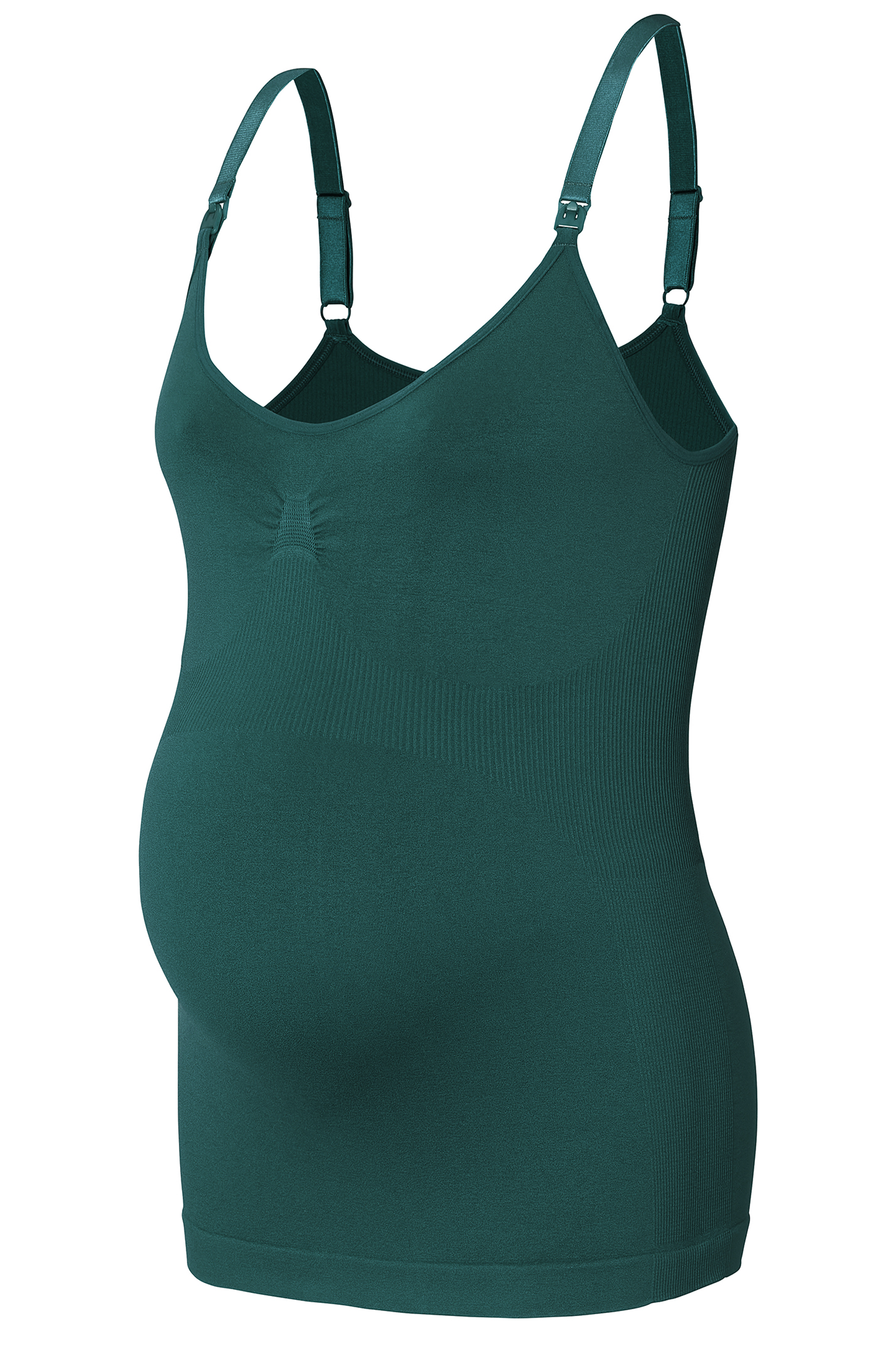 Seamless Umstands- und Stilltop aus super weichem und elastischem Material, welches sich perfekt an deinen wachsenden Babybauch anpasst. Nach der Geburt kannst du jederzeit ganz einfach und schnell stillen, indem du die praktischen Stillclips öffnest. Farbe: tannengrün
