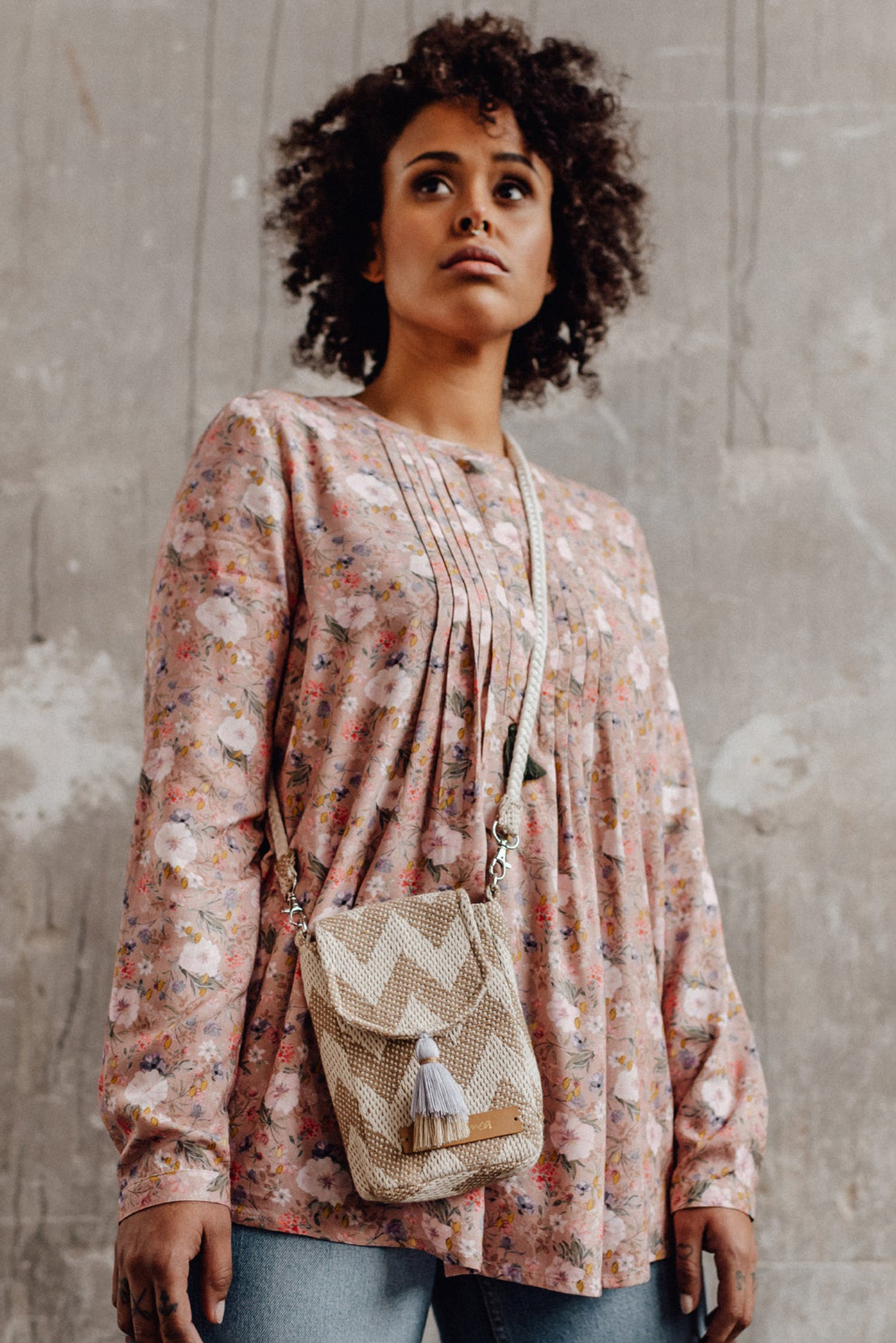 Umstands- und Still-Tunika mit Biesen und Blumen Print