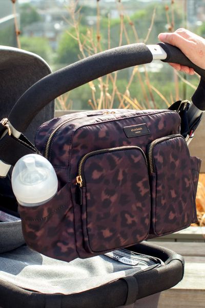 Zur 2 in 1 Funktion unserer variablen Wickeltaschen kommt meist noch eine dritte Funktion: Die Taschen lassen sich in der Regel schnell und einfach am Griff des Kinderwagens befestigen, sodass du sie gar nicht selbst tragen musst.