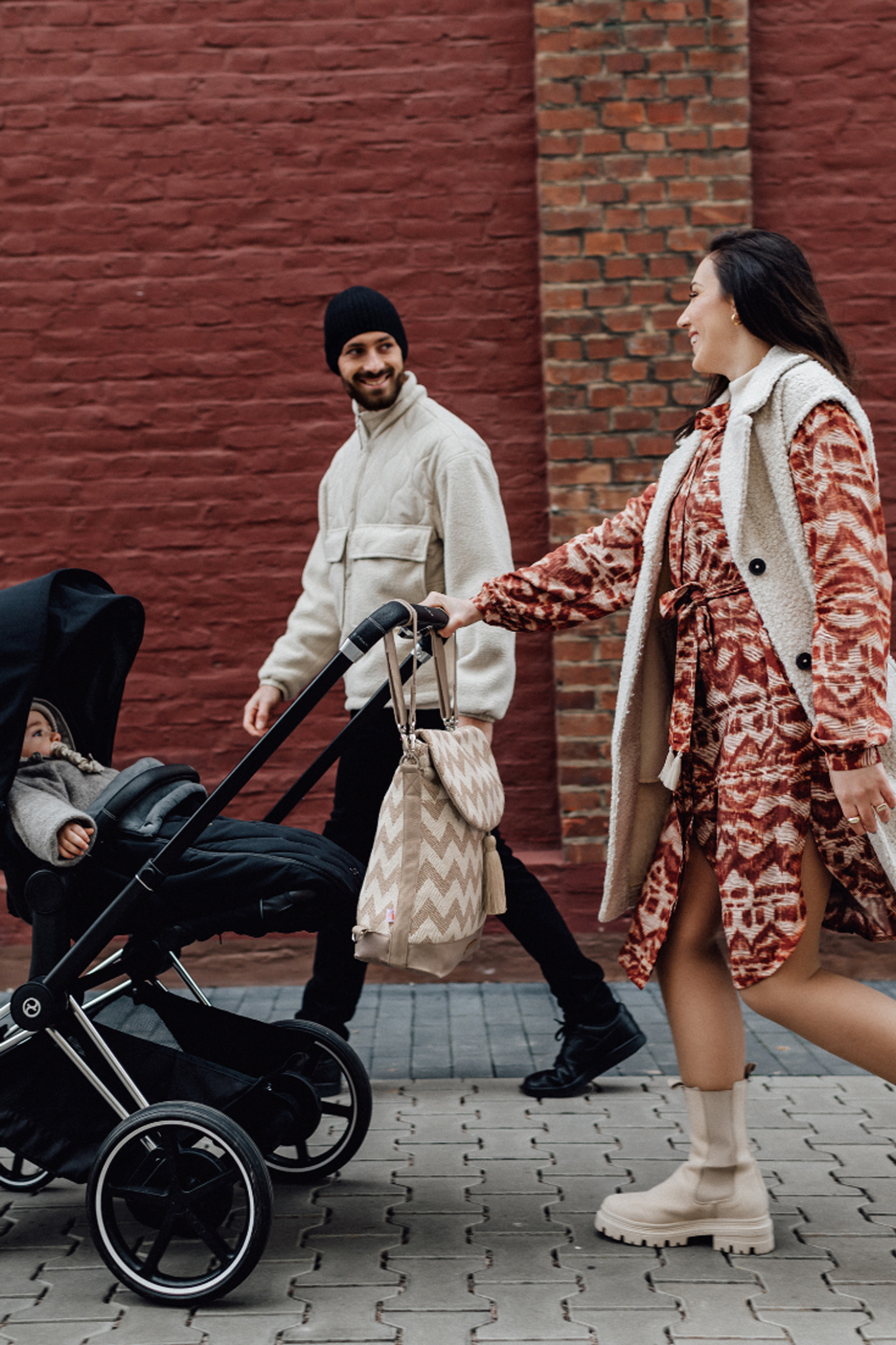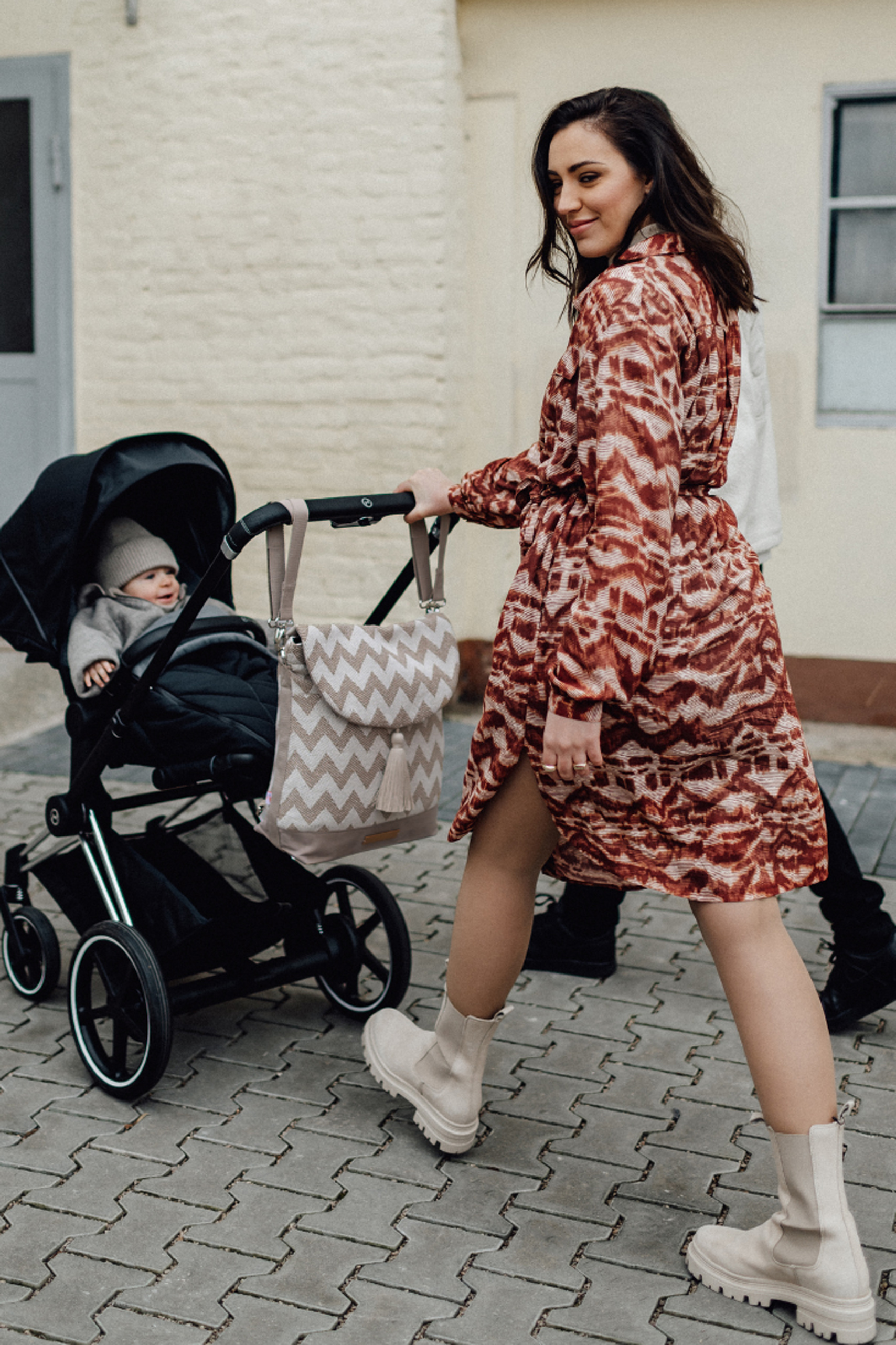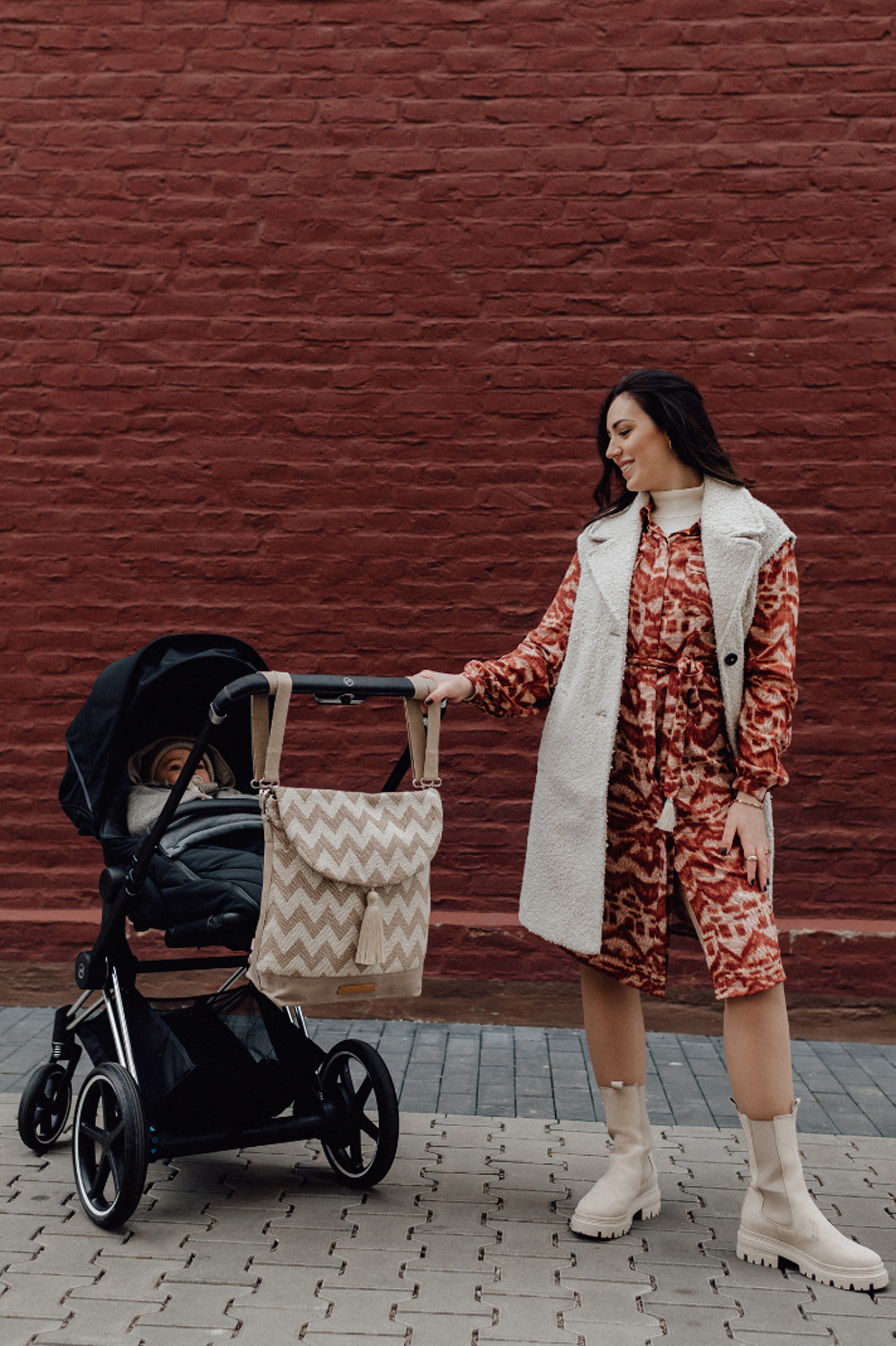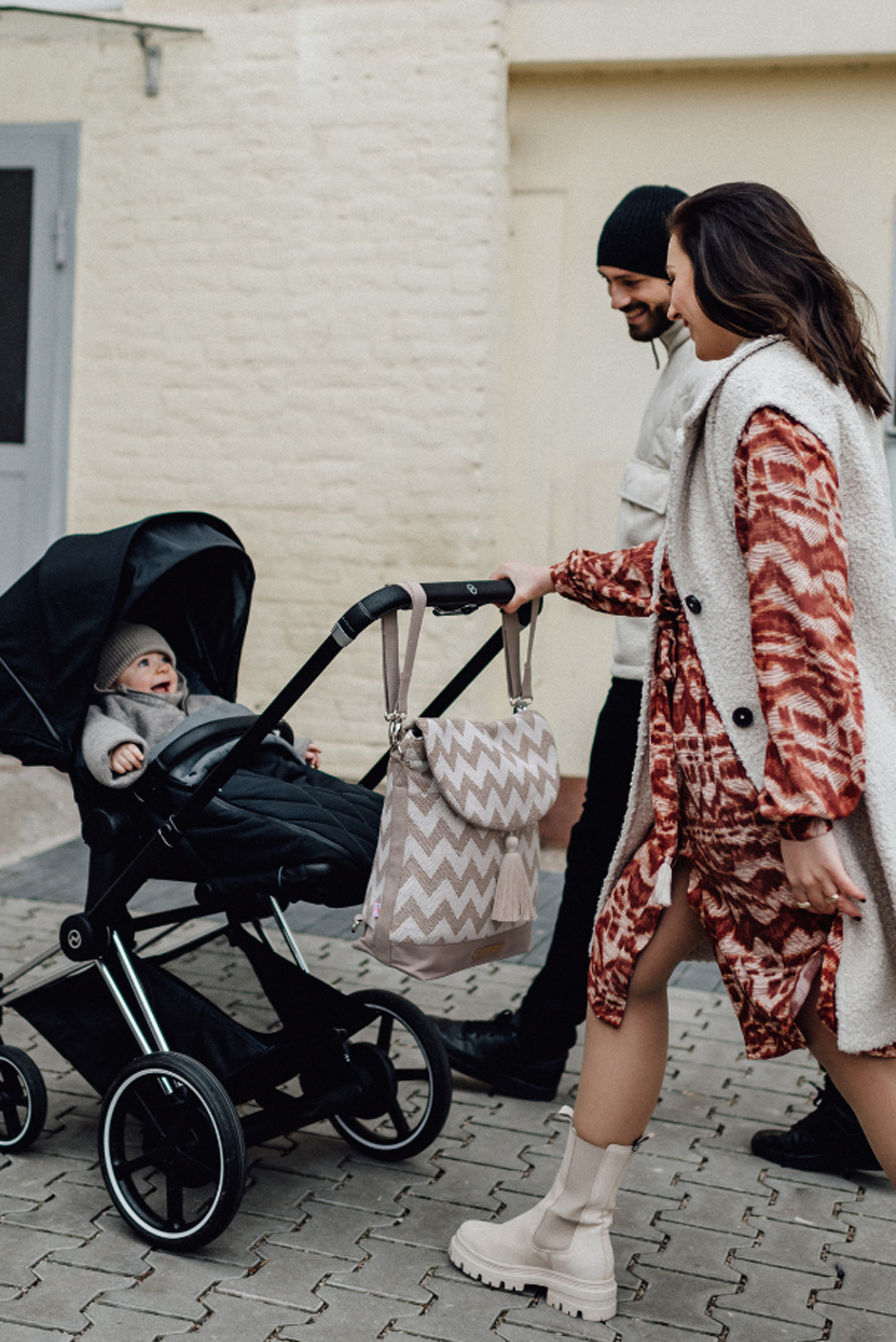 2 in 1 Wickelrucksack higher vision aus Baumwolle mit gezacktem Muster und großer Quaste. Du kannst ihn als Shopper und Rucksack verwenden oder am Kinderwagen mit den größenverstellbaren Tragegurten befestigen. Dank der zahlreichen Innentaschen ist genug Platz für Windeln, Fläschchen und Feuchttücher. Die Wickeltasche wurde unter fairen Arbeitsbedingungen hergestellt. Farbe: beige