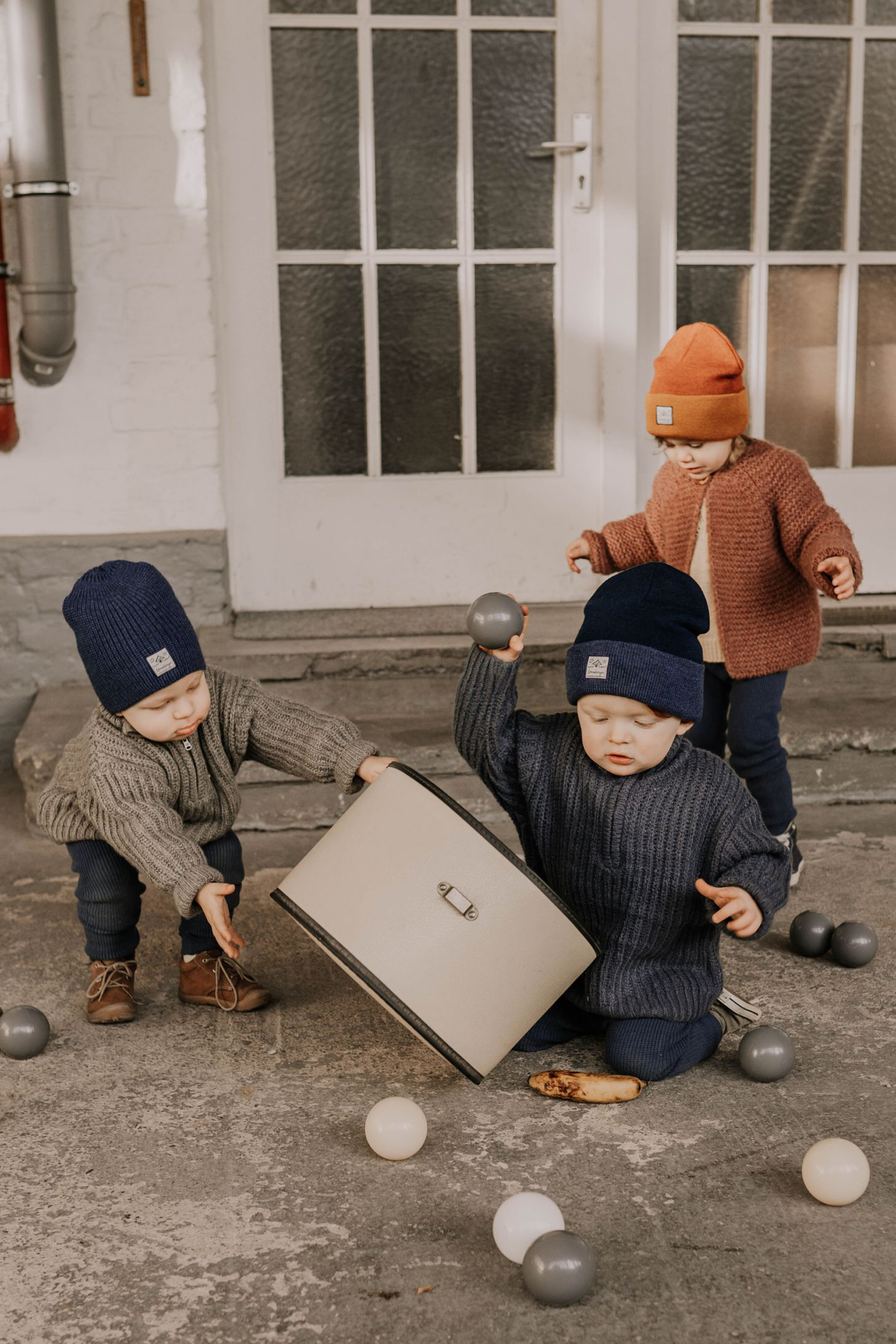Fine Knit Hat Bi-Color with Merino Wool navy/blue