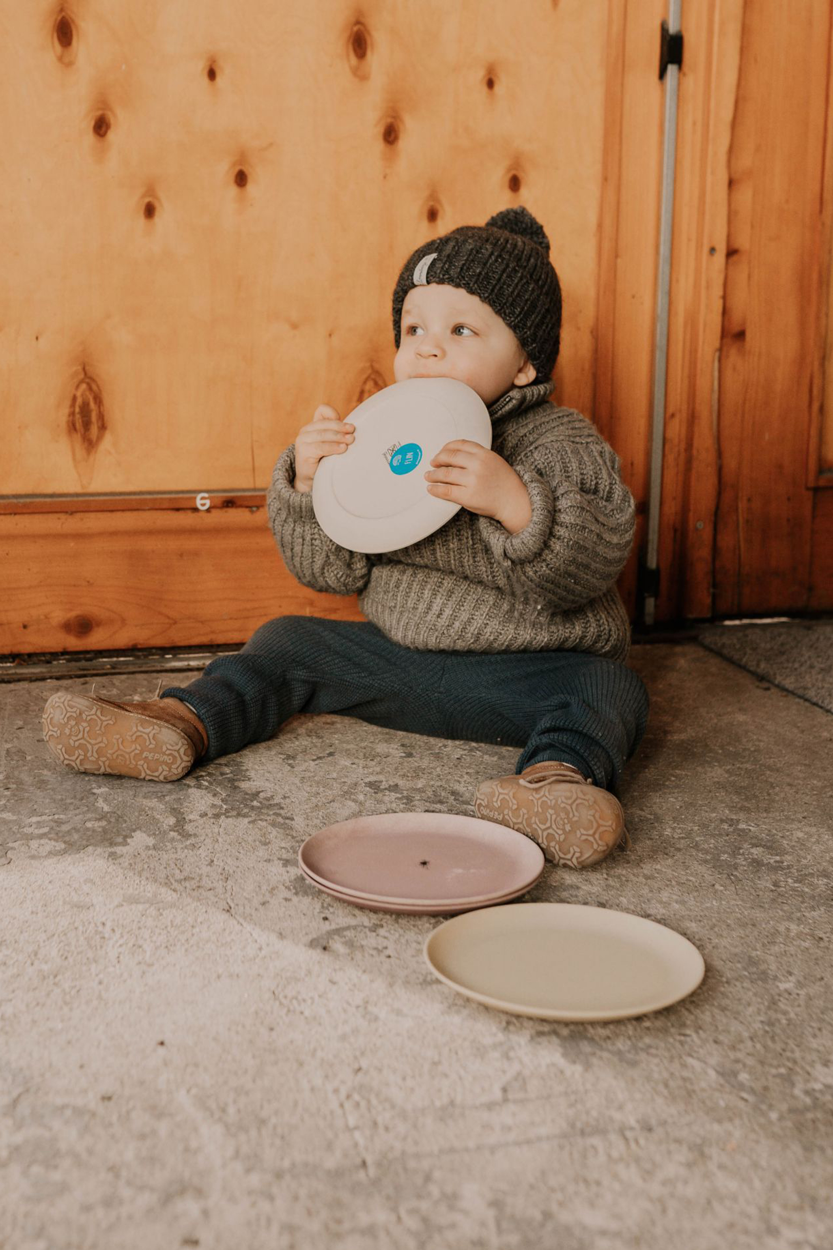 Coarse knitted bobble hat with envelope made of a high quality alpaca wool mix. The material is super soft and breathable. It has the Oeko-Tex Standard 100. The nobly processed children's knitted hat is produced fairly in Europe. Colour: grey