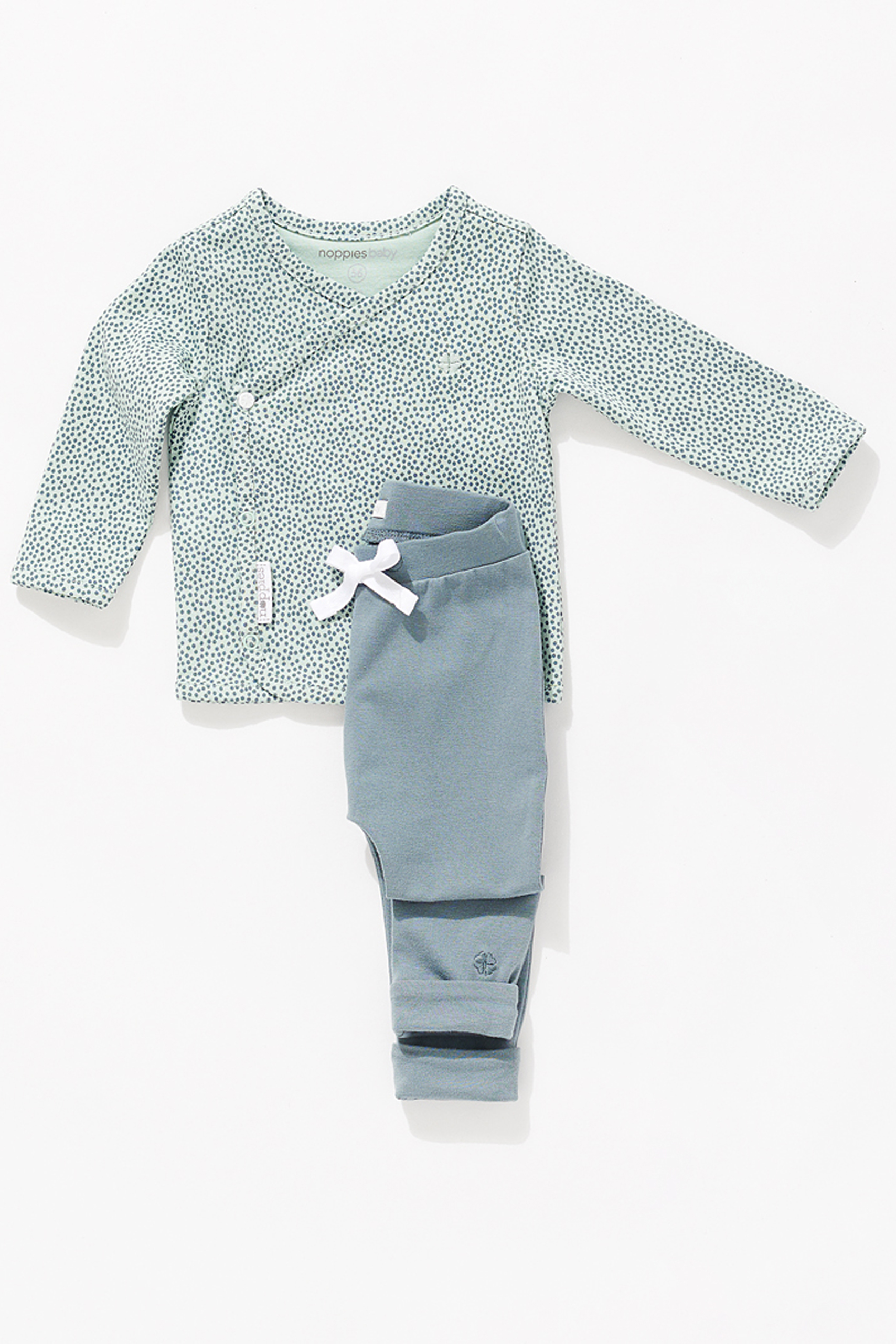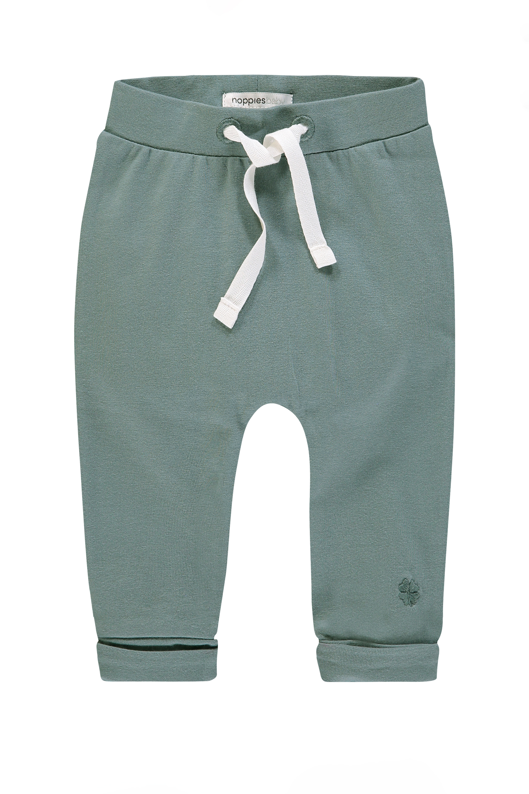 Cuddly baby trousers made of especially soft, GOTS certified organic cotton with a small shamrock motif. The comfortable trousers are very stretchy and their wide waistband can be adjusted with a drawstring. The trouser legs can be folded over. Fits perfectly to the Organic Baby Long Sleeve Shirt dark green. Colour: dark green