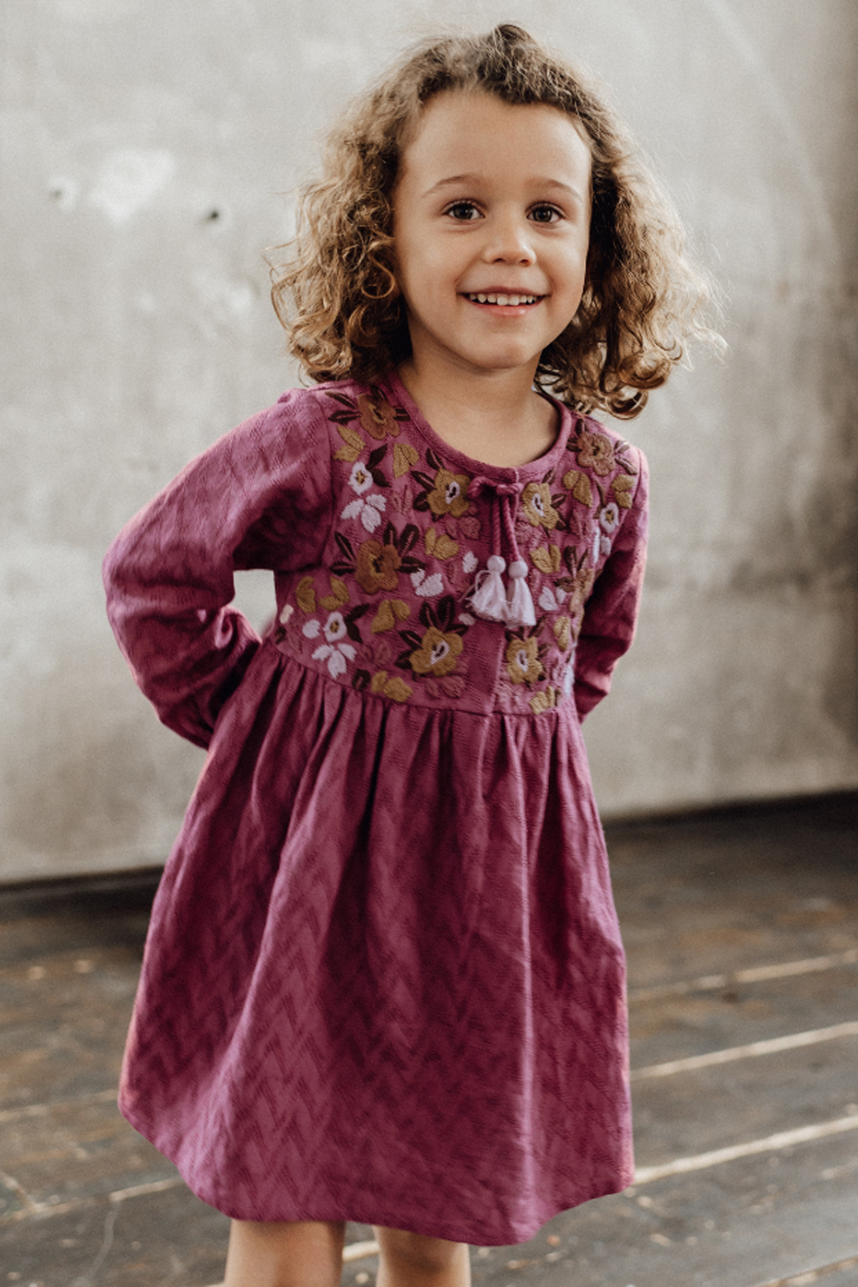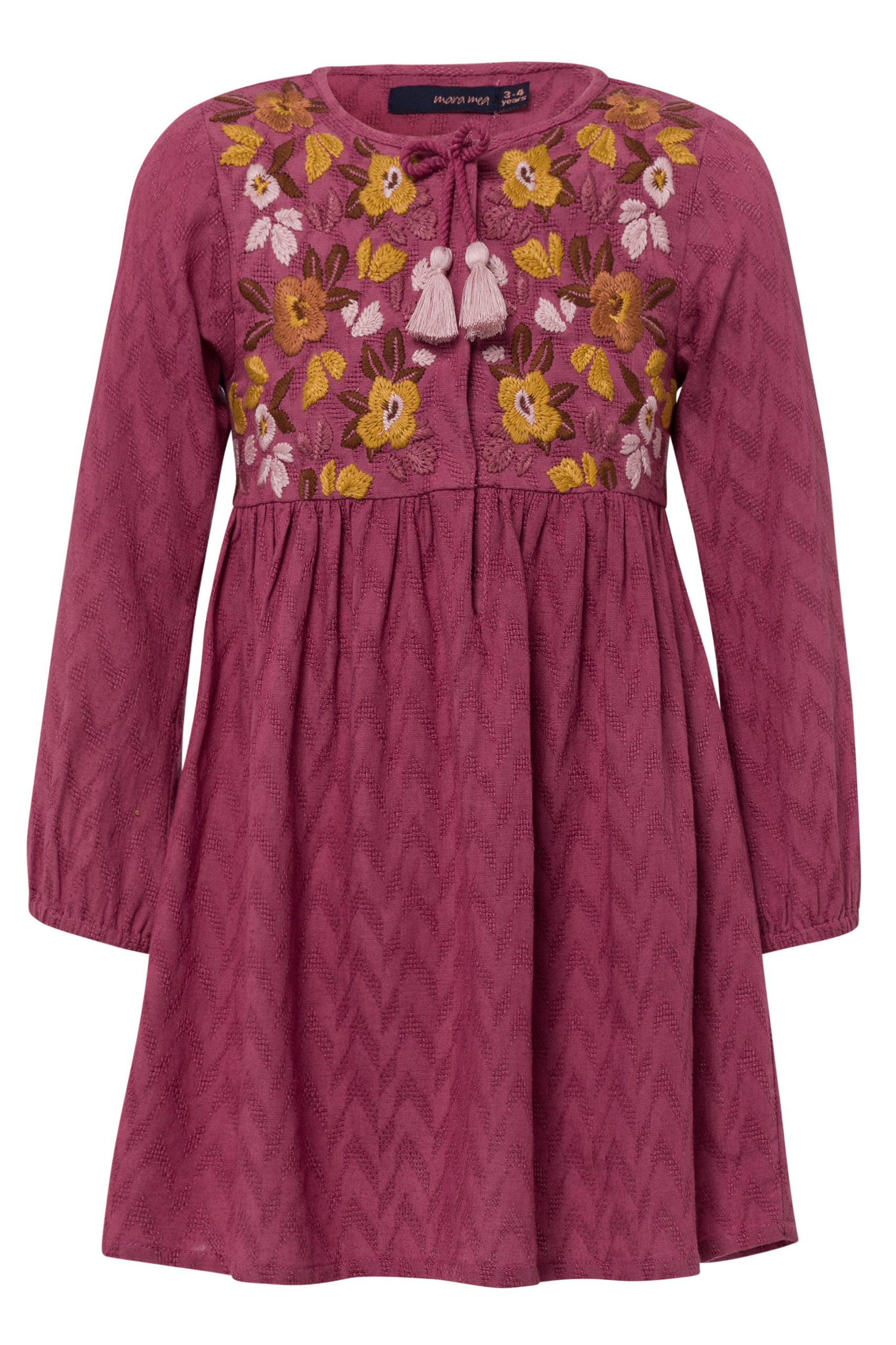 Mini Me dress with great flowers, embroidery and coloured tassels. The pretty dress with long sleeves is made of a cotton fabric with a light zigzag structure. Colour: pink