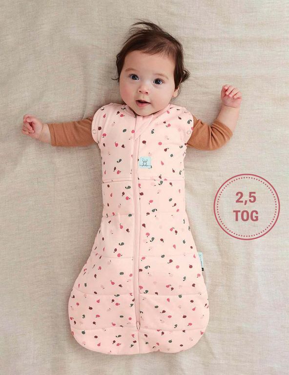 Depending on the season, onesies made of organic cotton and our lined sleeping bags are suitable for your baby. You can use the TOG rating as a guide, which describes the thermal resistance of textiles. The higher the number, the warmer your baby will be in the sleeping bag. Example: 2.5 TOG are warm lined sleeping bags for room temperatures between 15 and 21 degrees.