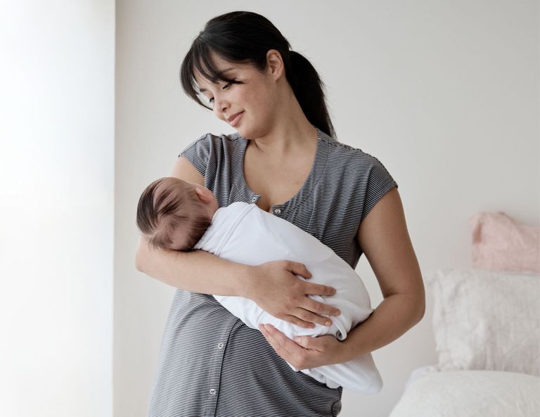 Some cozy maternity pyjamas or a nursing nightgown made of comfortable organic cotton or sustainable viscose is always a good choice. Breathable materials and soft cuts make your body feel comfortable and let you sleep well during pregnancy and breastfeeding.