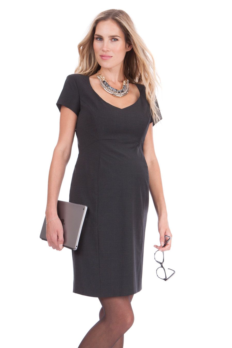 Crafted in a luxury wool mix and fully lined in soft stretch viscose, this shift maternity dress offers sharp corporate appeal, while allowing plenty of stretch for a flexible fit through every stage of pregnancy. Feminine princess seams work to streamline your curves, while skilfully shaped seams at the empire waist highlight your slimmest point. A flattering open neckline is framed by simple capped sleeves, helping to draw the eye up towards your face. Colour: anthracite