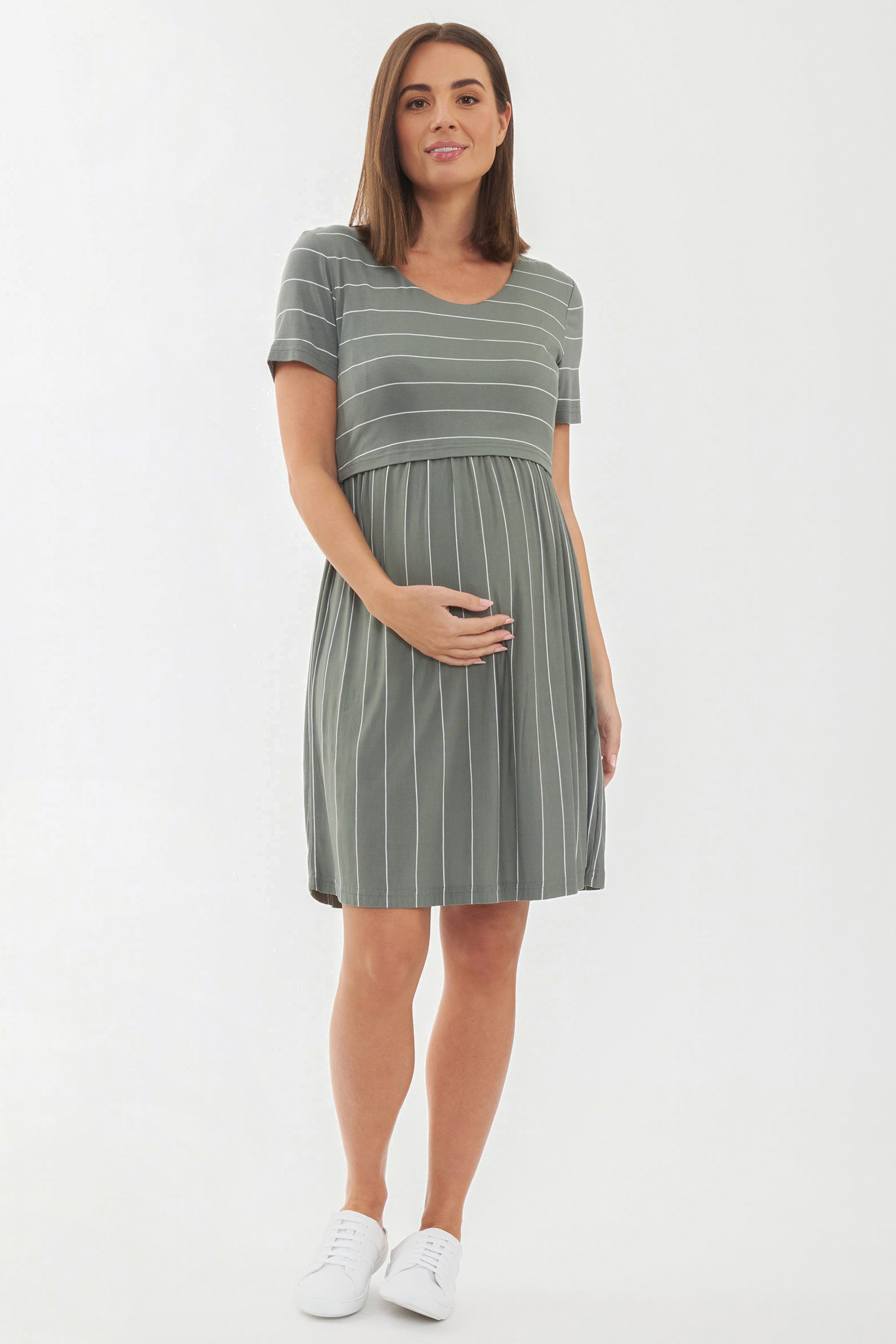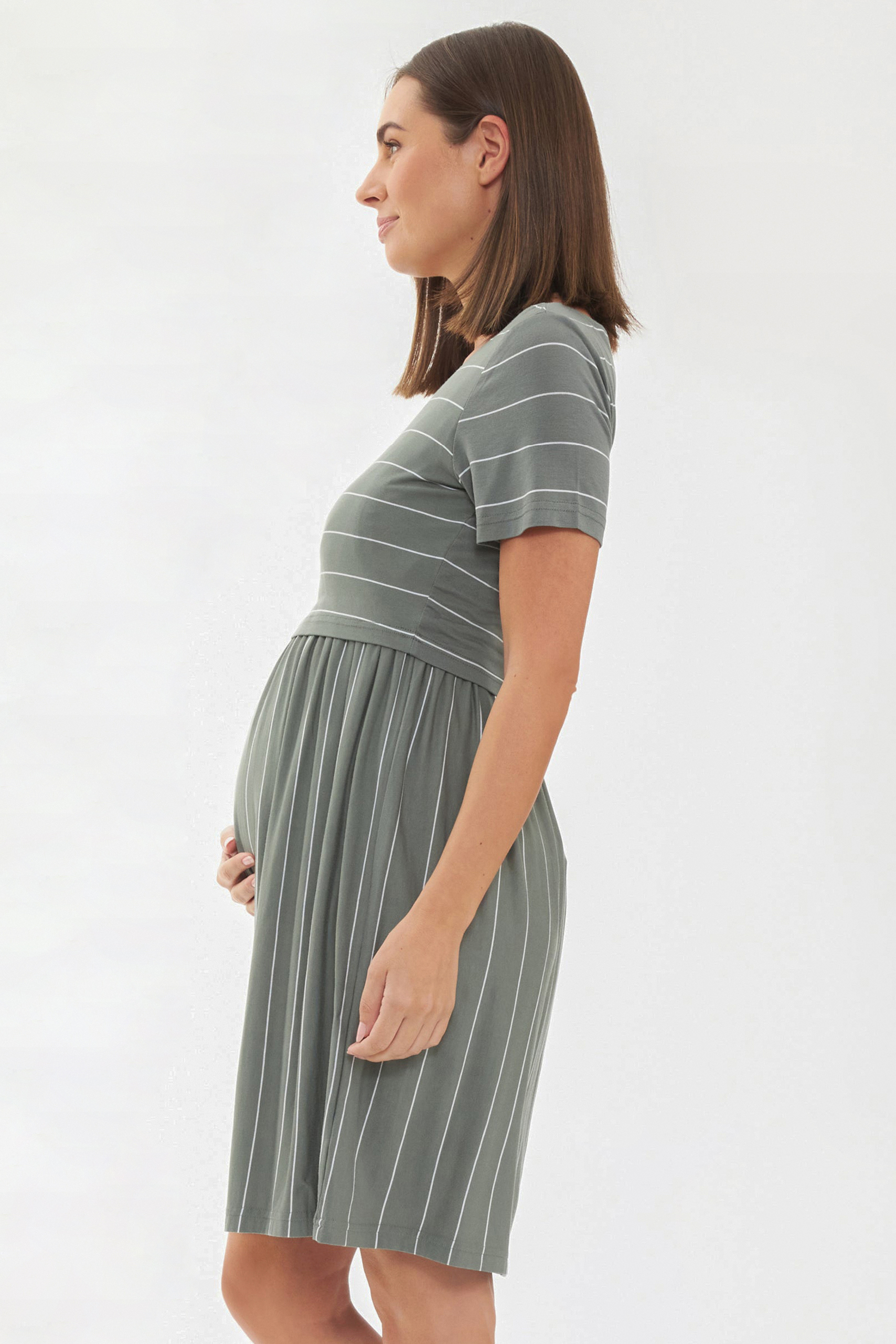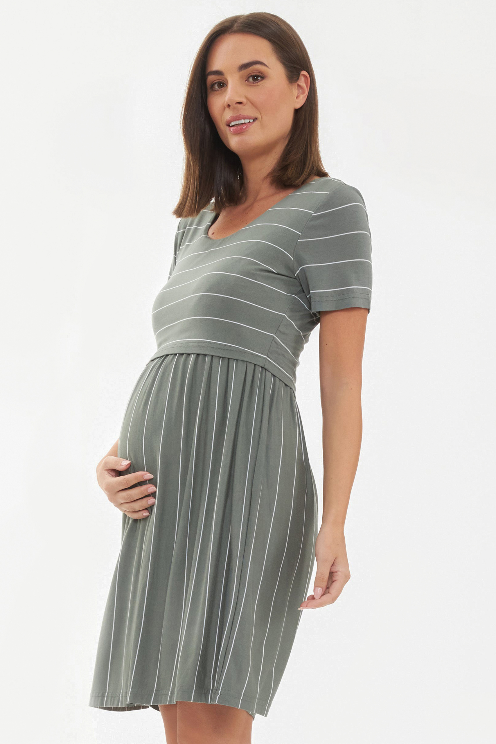Maternity and Nursing Dress olive / weiß Striped