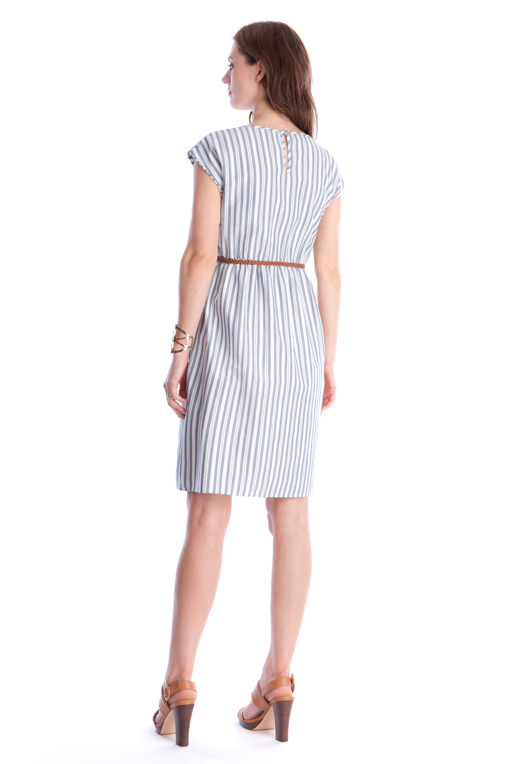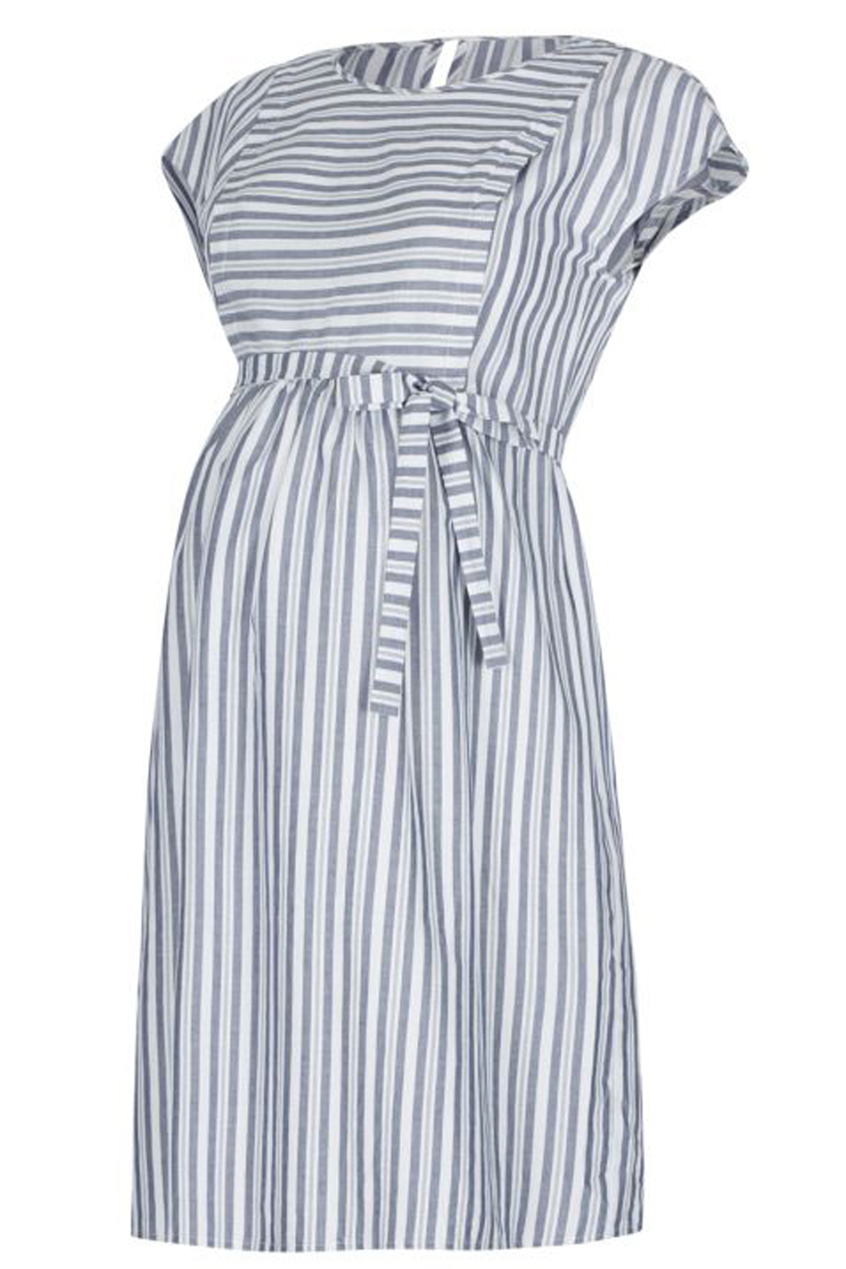 Effortless and ultra-light, our Panelled Maternity and Nursing Dress puts a feminine new spin on the nautical trend. 100% cotton, this dress is gently elasticated at the back, with a self-tie belt to define your empire waist. After baby is born, the dress makes an easy transition into your nursing wardrobe, with invisible zips to the sides providing easy access for breastfeeding. Flattering grown-on sleeves and cute pockets to the sides complete the look. Colour: white/light blue