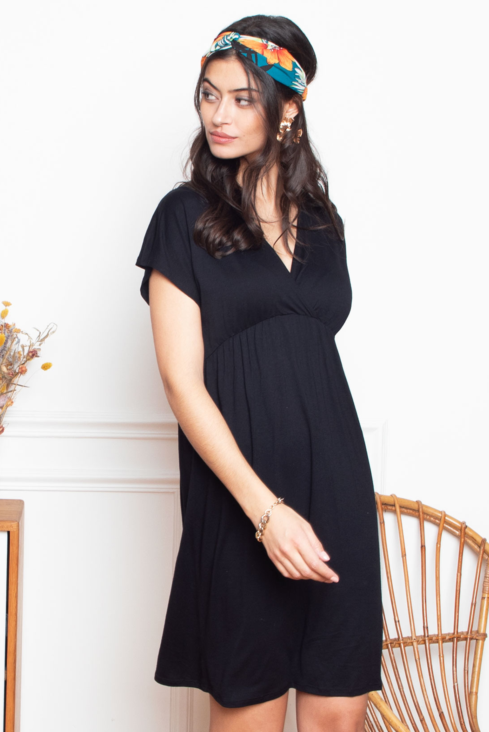 Maternity and Nursing Dress with Cropped Sleeves black