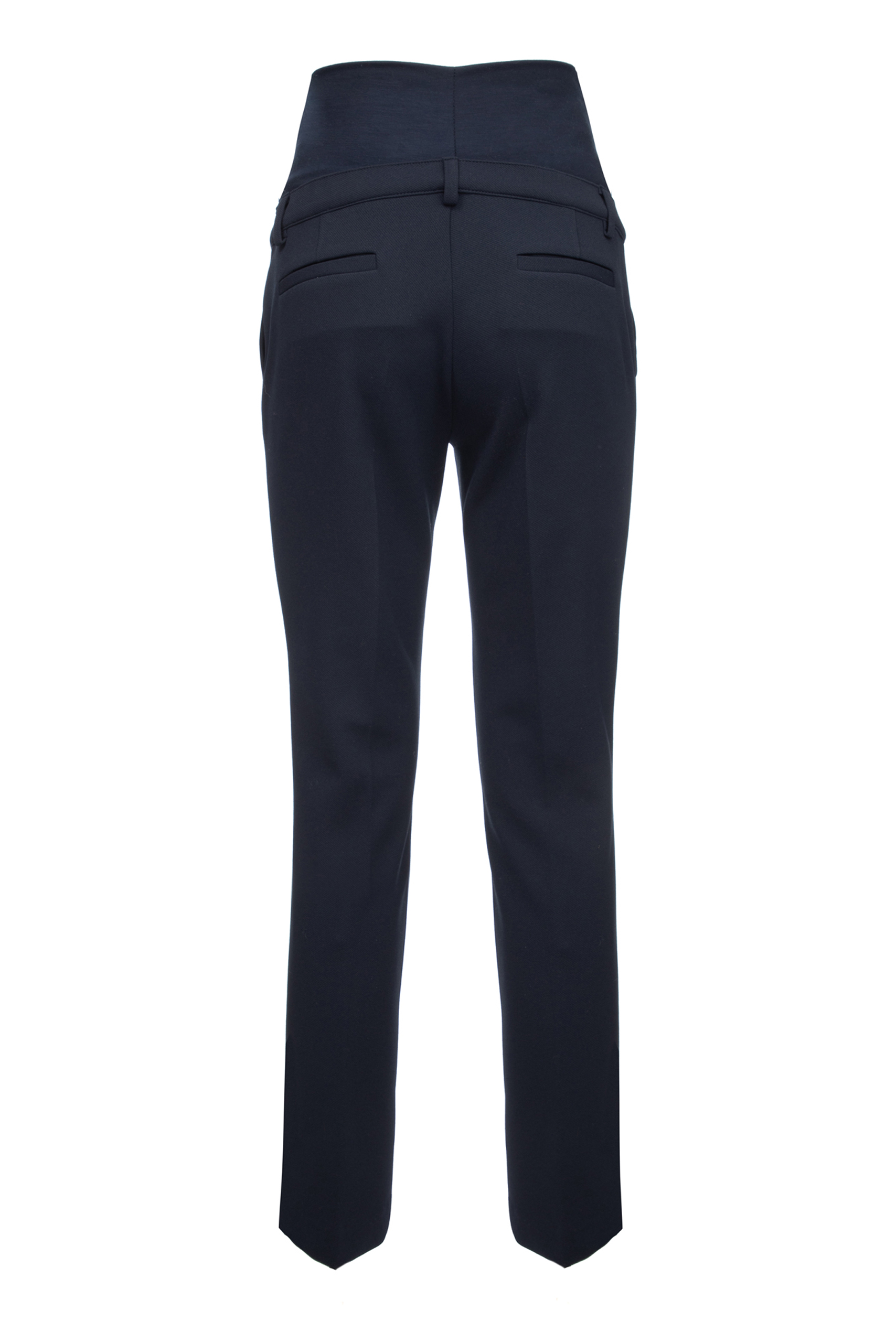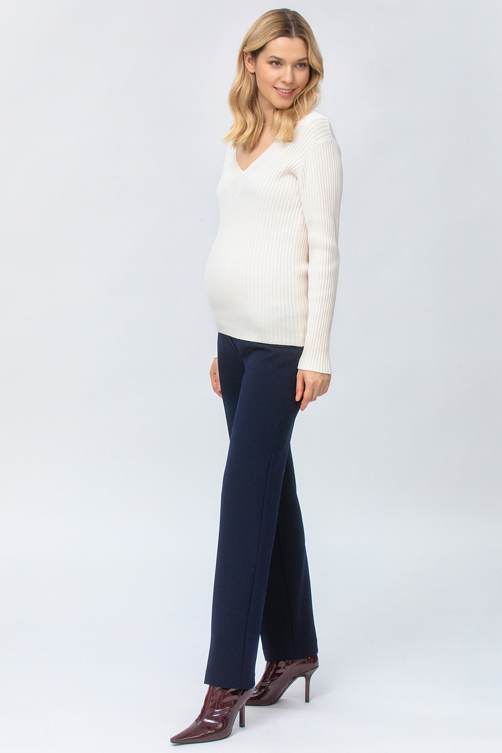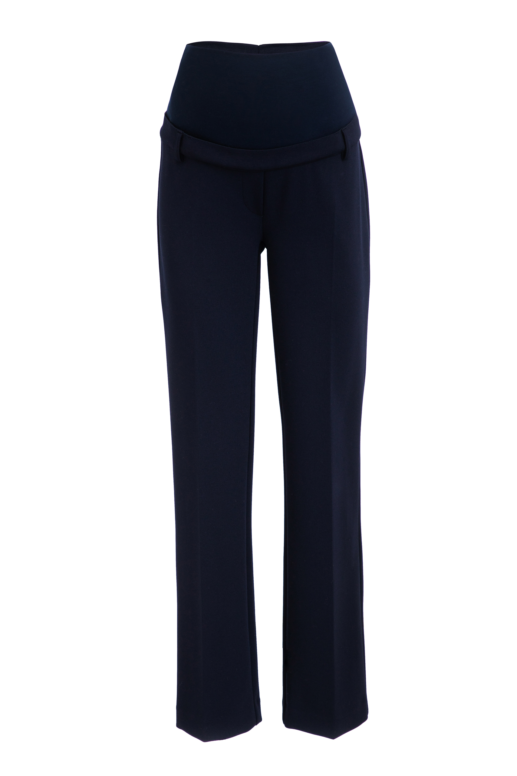 Straight leg business maternity pants with classic crease and welt pockets. The elastic, high waistband made of soft material is super comfortable and gives you gentle support throughout the day. With hidden buttons on the inside, you can adjust the waistband individually to your changing figure and thus continue to wear the pants long after the birth. Combine them, for example, with a chic blazer and maternity blouses or maternity shirts to stylish outfits for the office or for special occasions. Color: navy