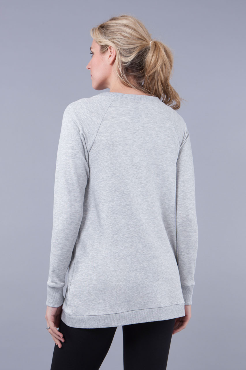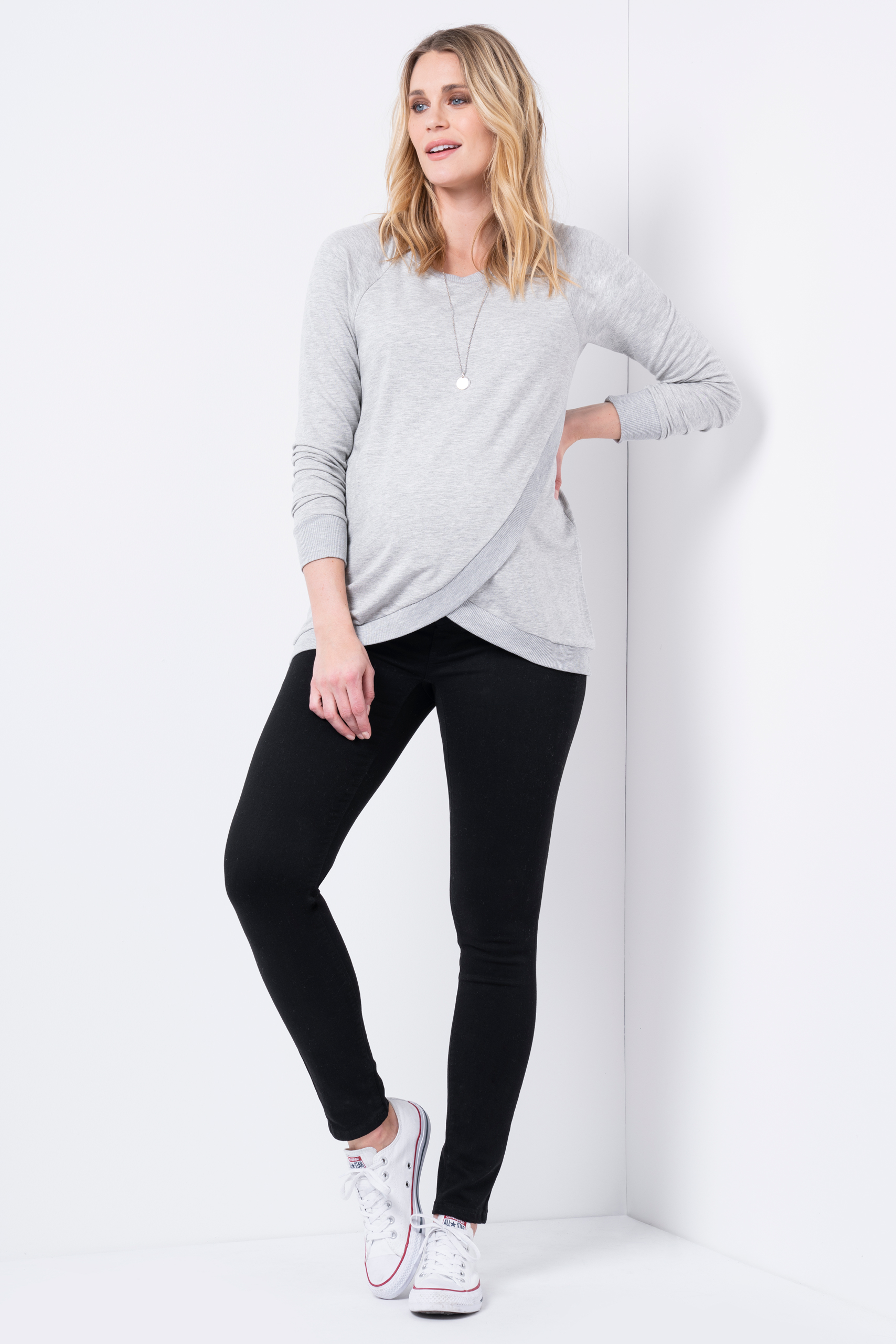 Made in the softest sweater fabric, the relaxed sweater drapes beautifully over your figure, while the crossover design offers a flexible fit for your growing curves. After baby is born, the double layer design opens up at the front to allow easy access for breastfeeding – making this a must-have for new mamas.