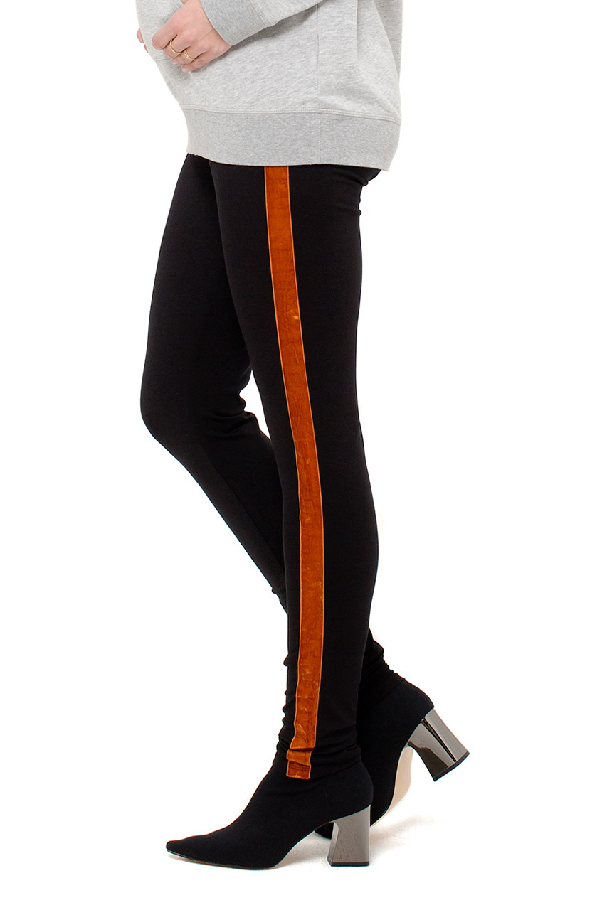 Maternity leggings with wide waistband and velvet details. colour black/red