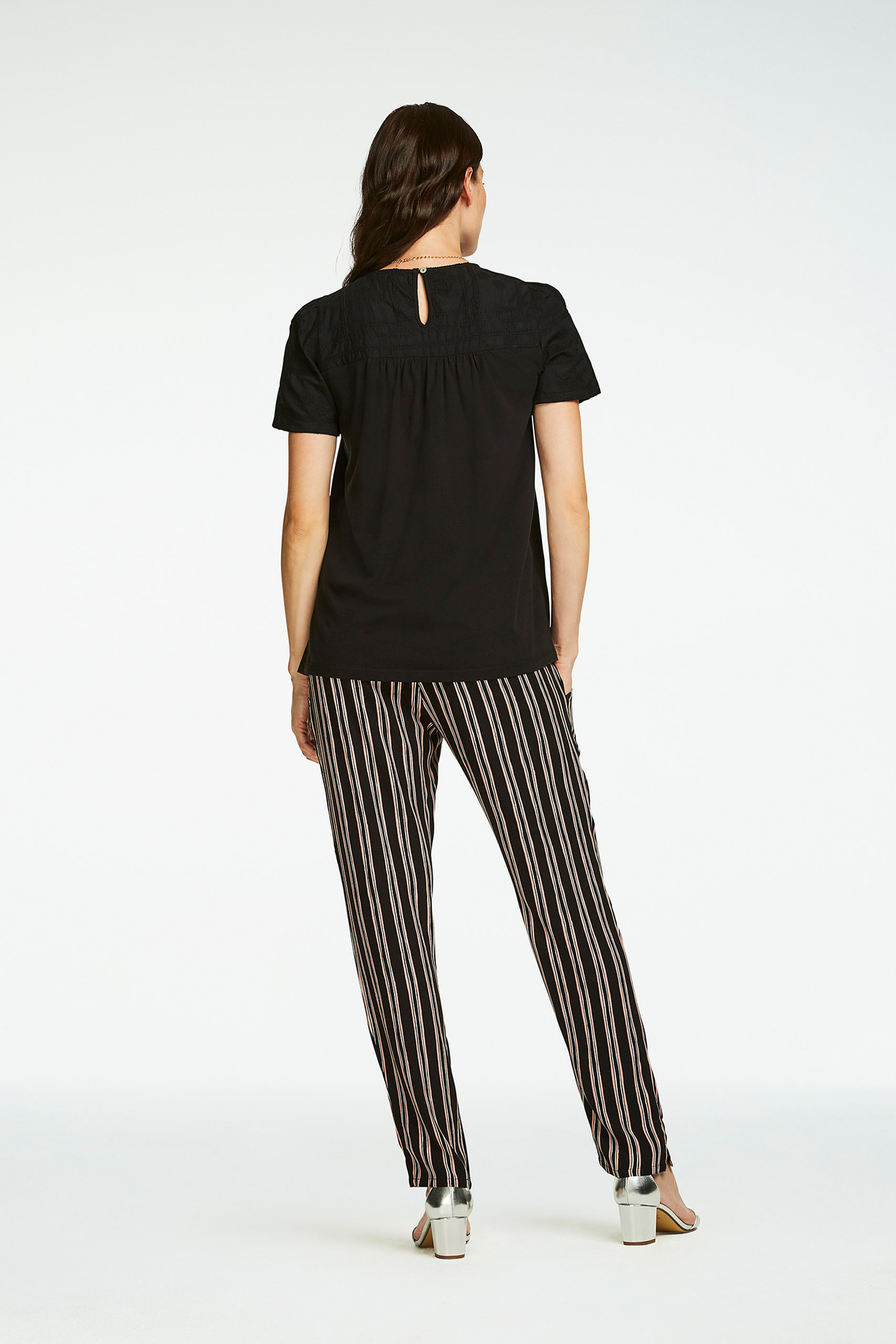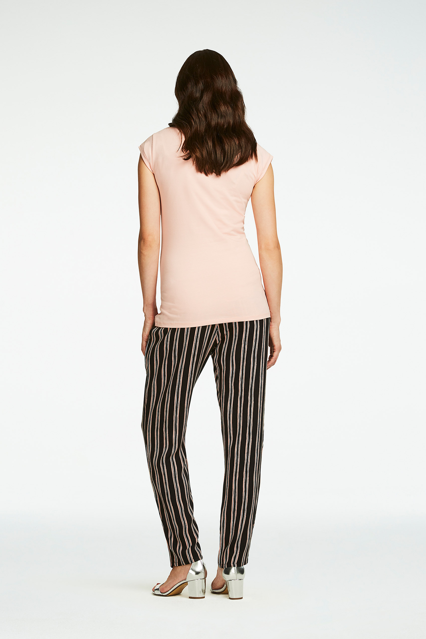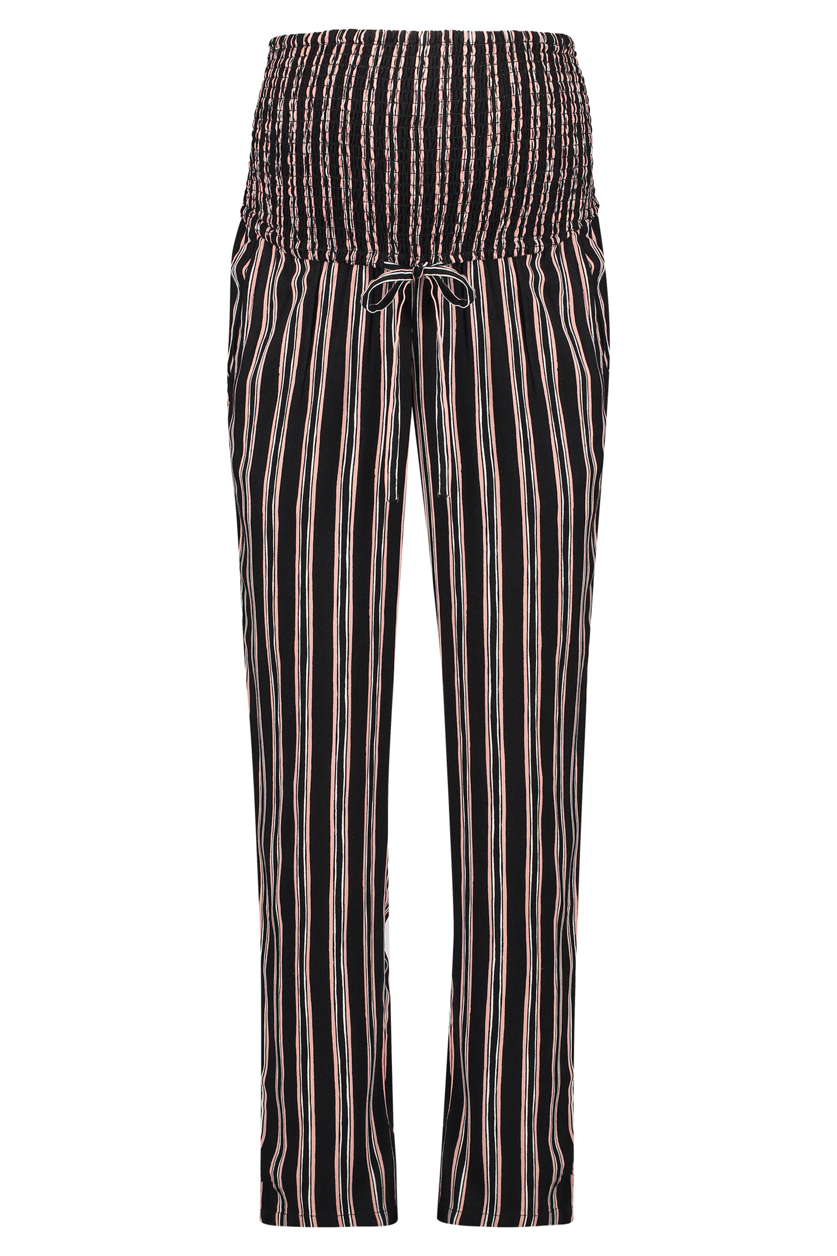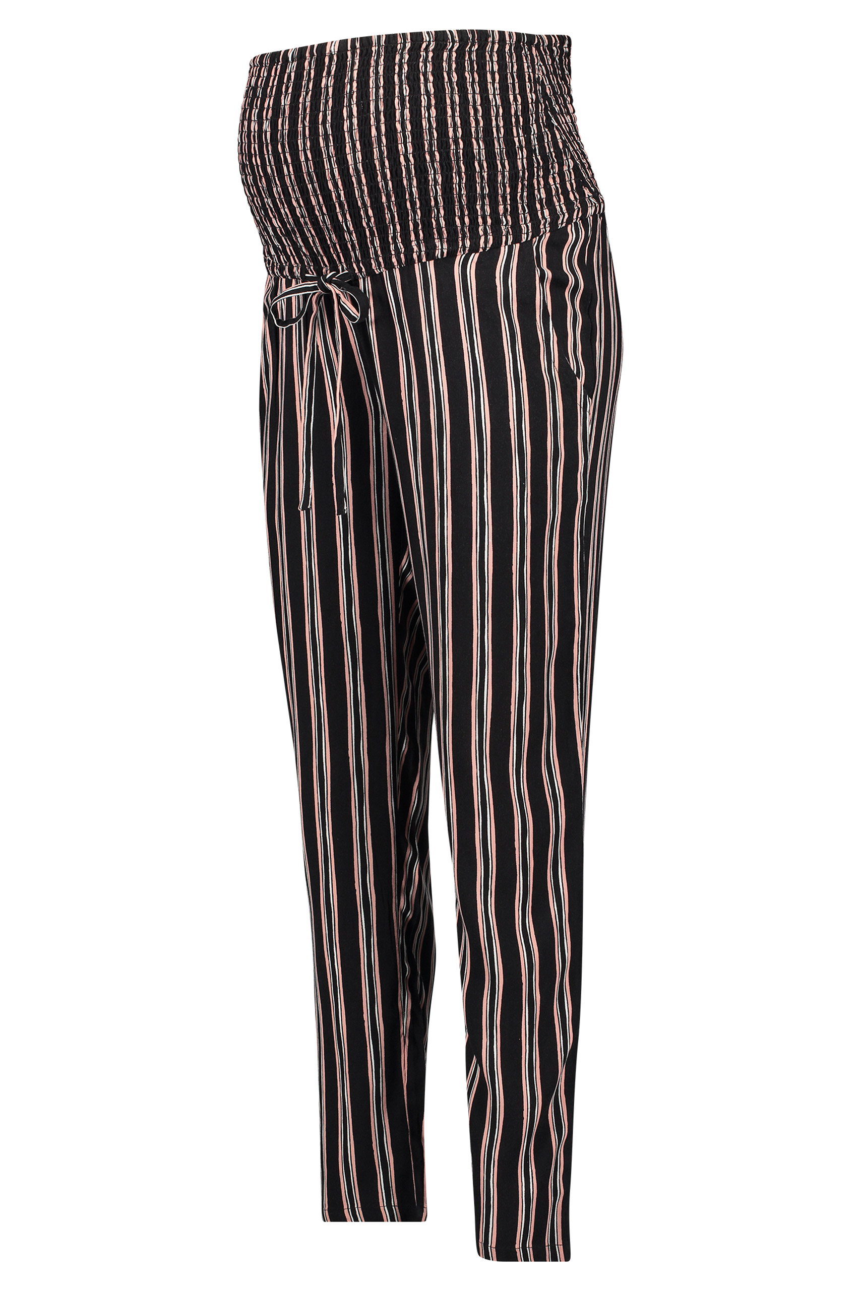 Striped Maternity Trousers with pleated Over-Bump Band black