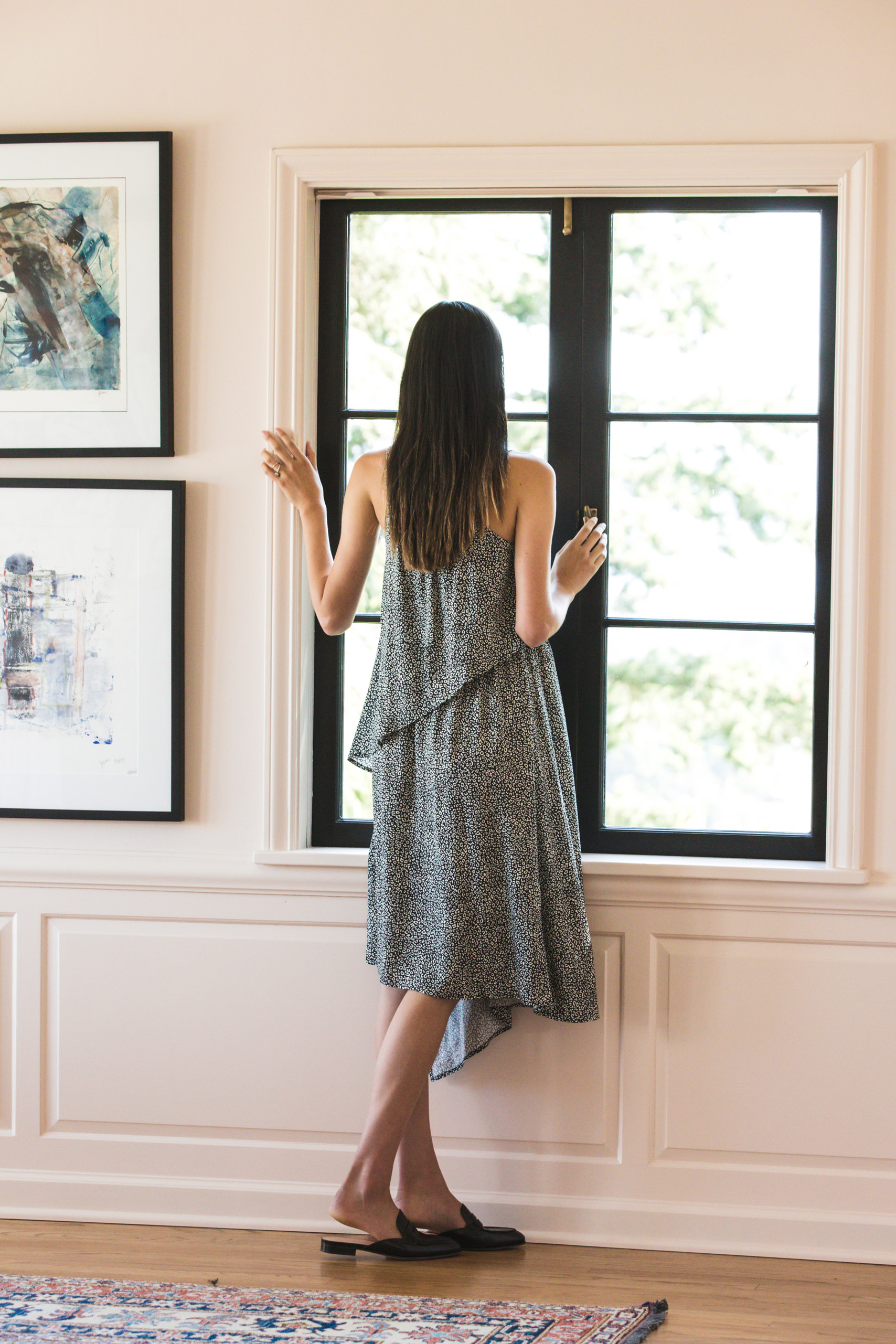 Maternity Dress with Asymmetrical Nursing Layer Animal Print