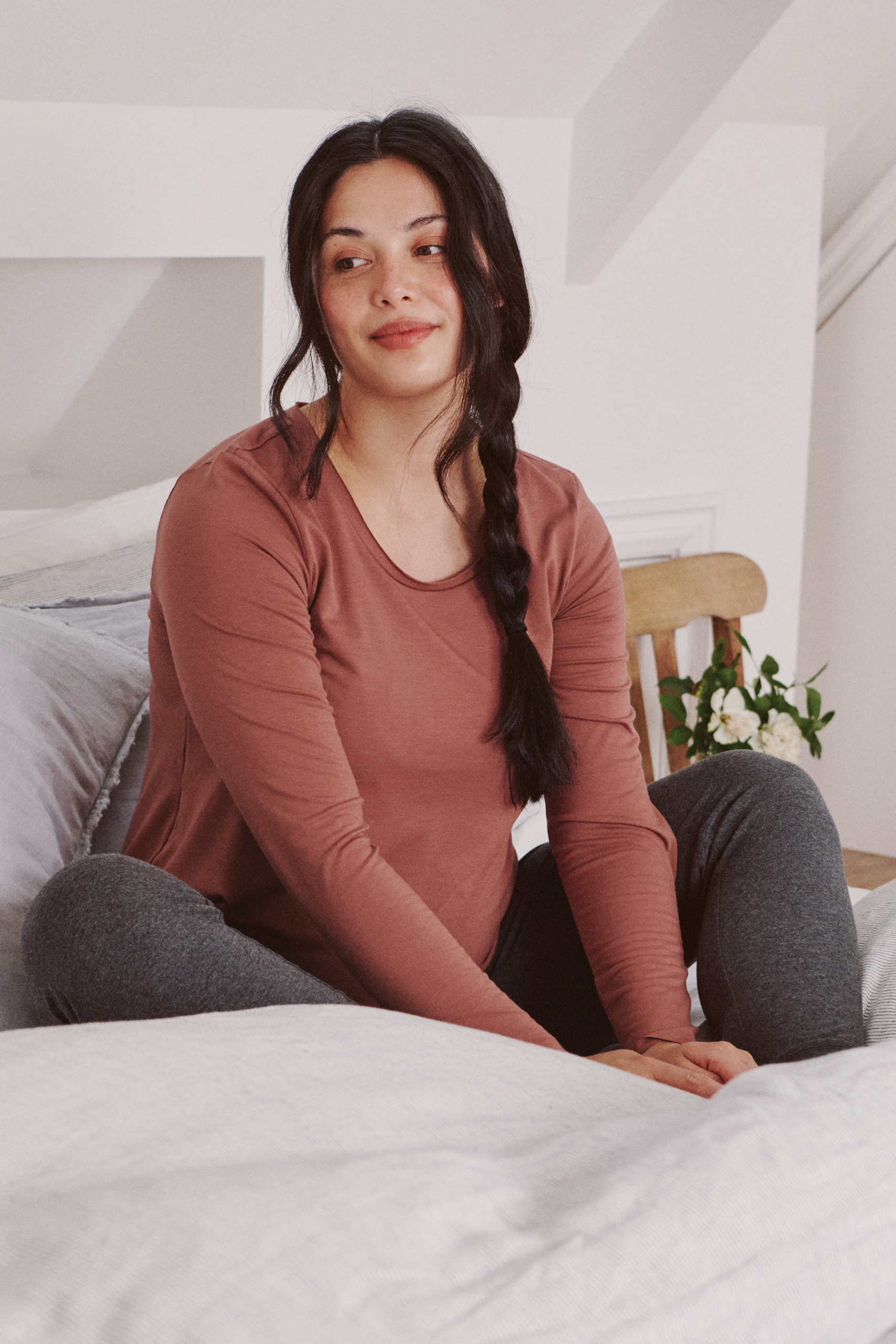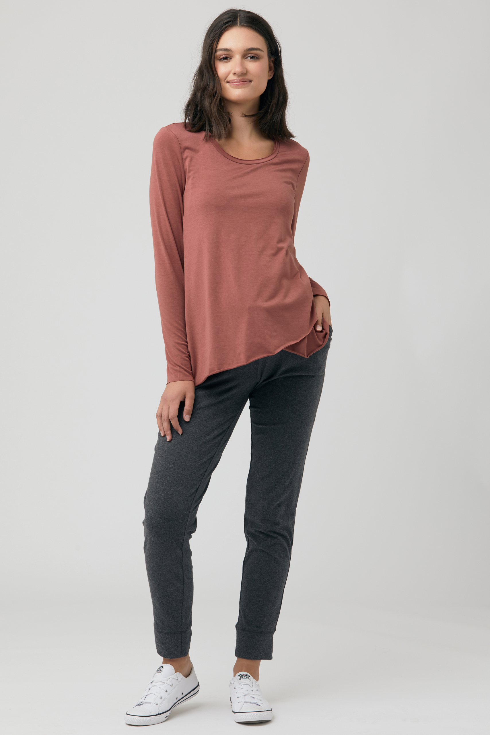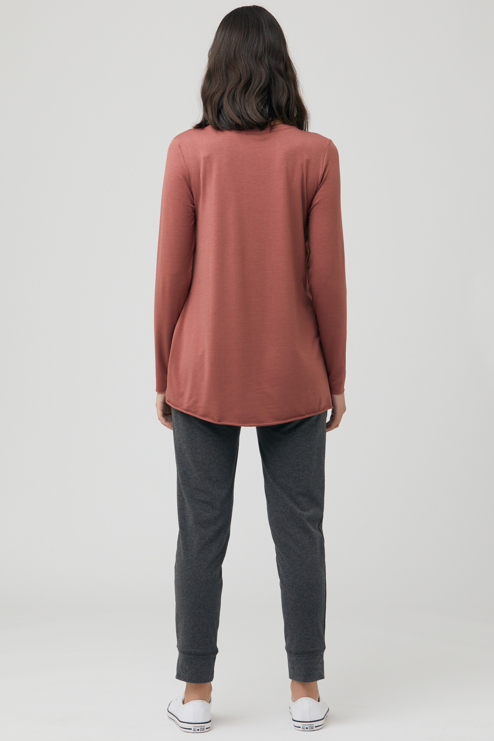 Raw Edge long Sleeve Maternity and Nursing Shirt terracotta