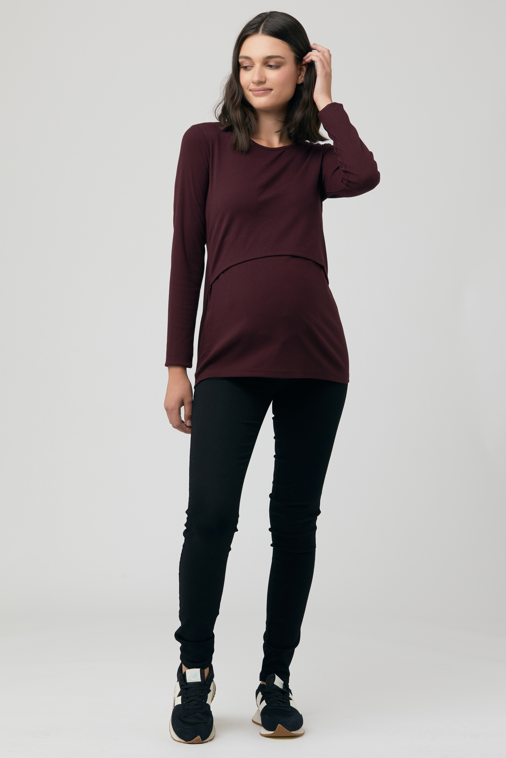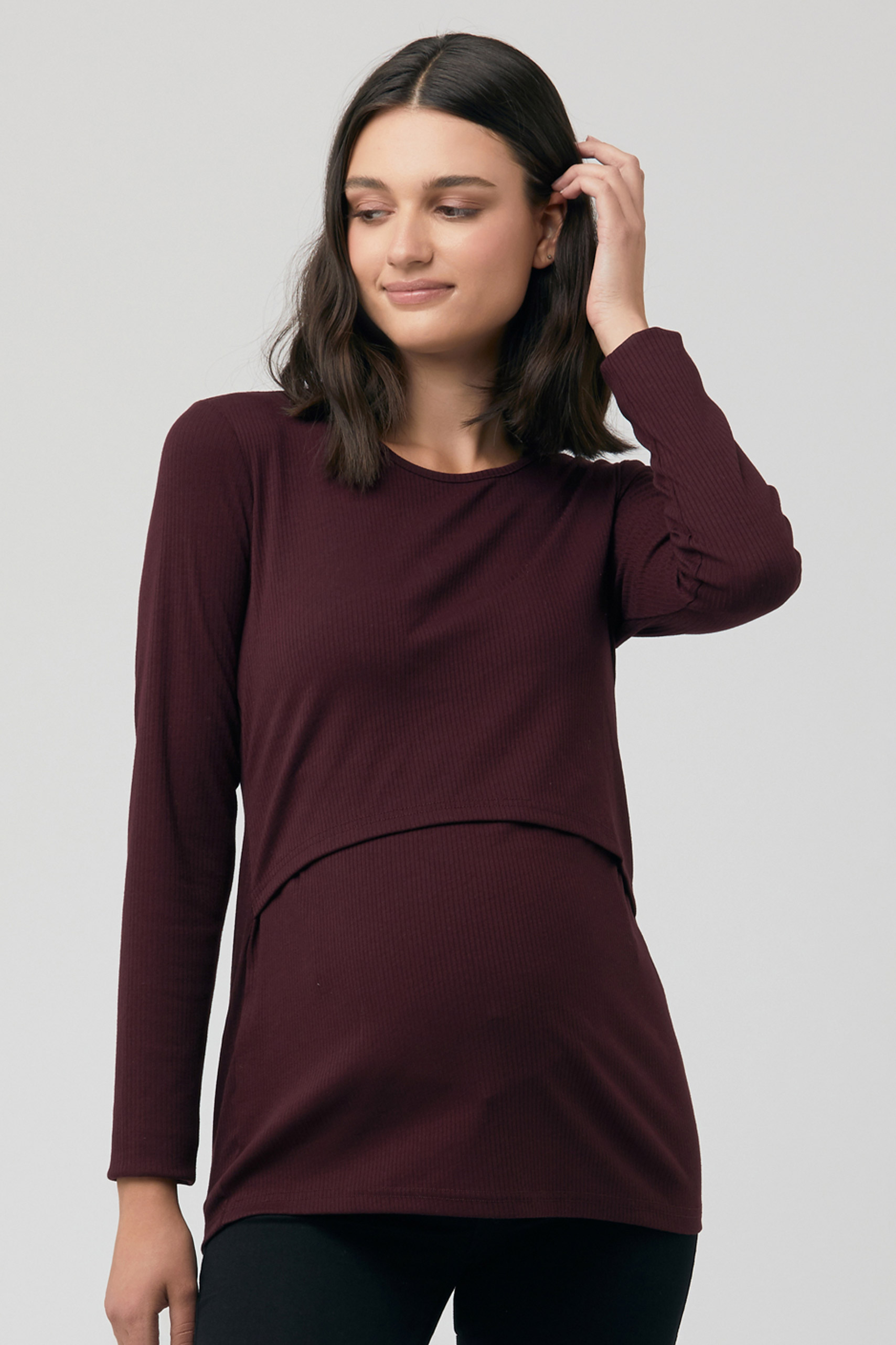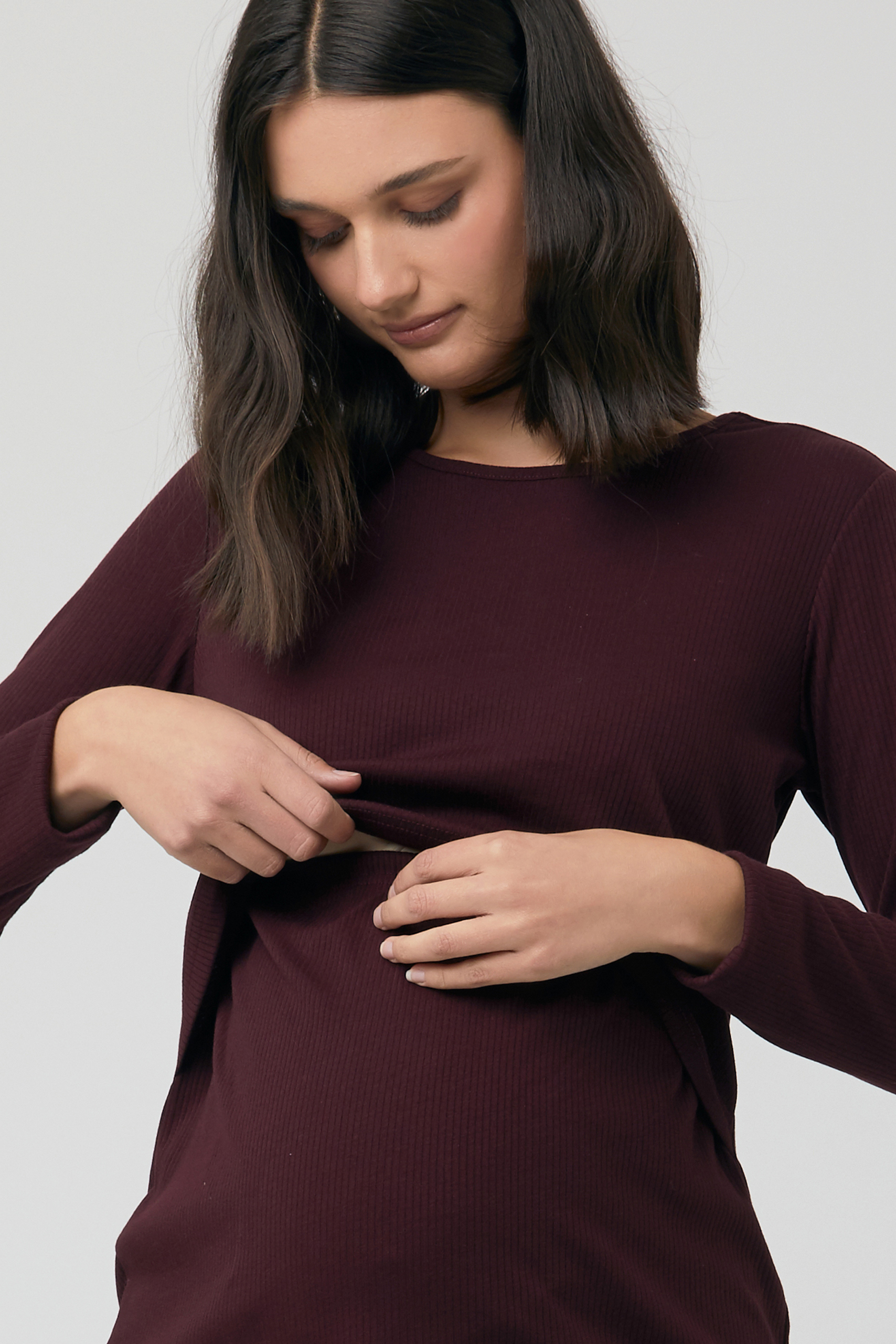 Maternity and Nursing Shirt with Rib Structure wine red