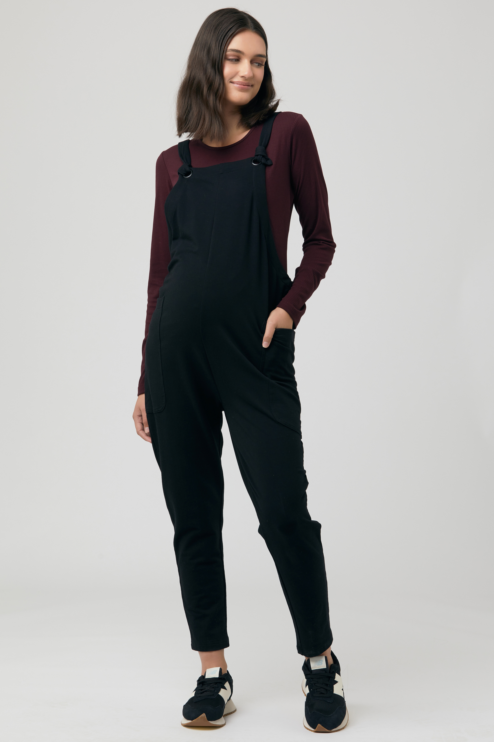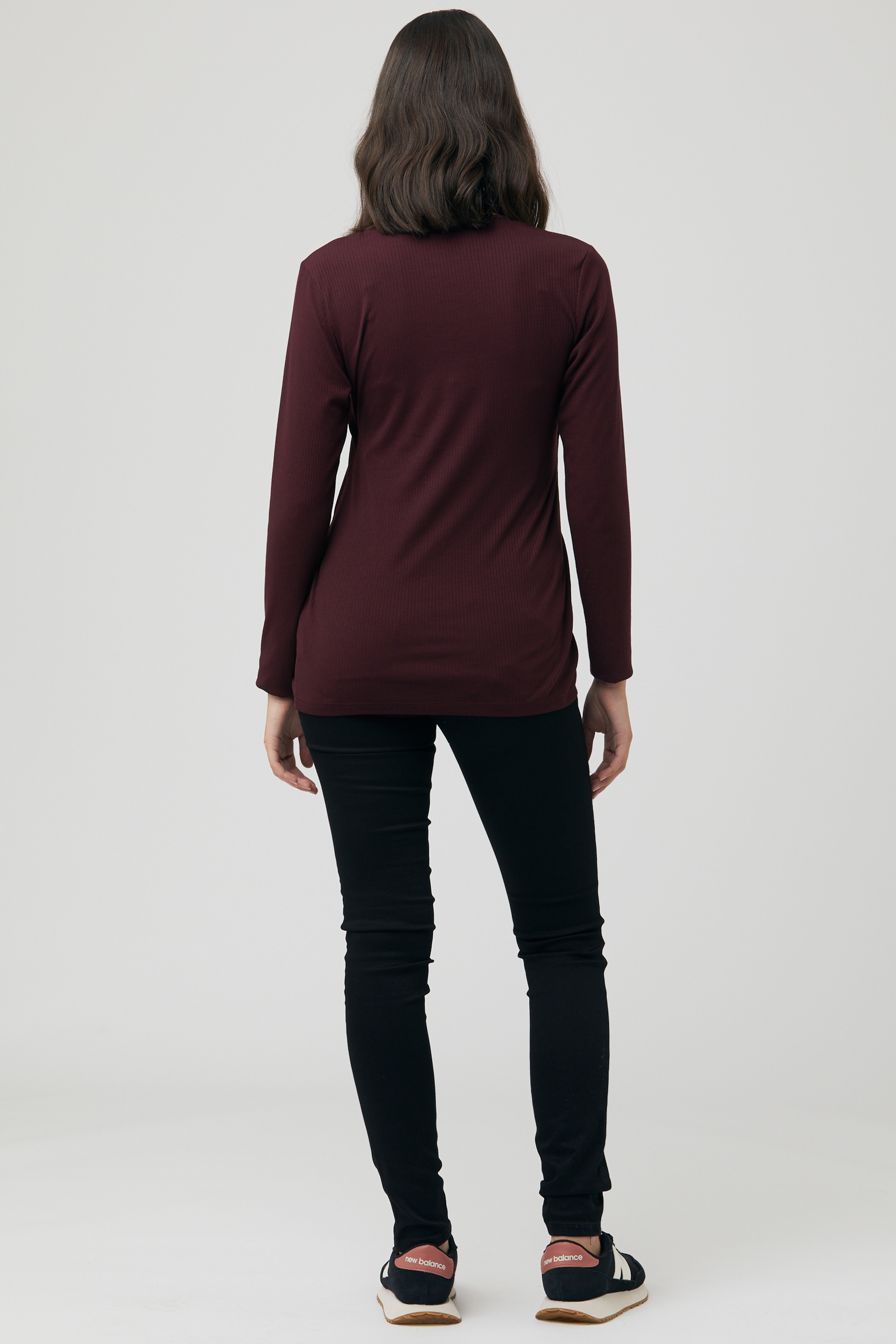 Maternity shirt in soft, stretchy fabric with a round neckline and ribbed texture. There is a discreet nursing access under the top layer of fabric, so you can easily continue wearing the dress after pregnancy. Colour: wine red