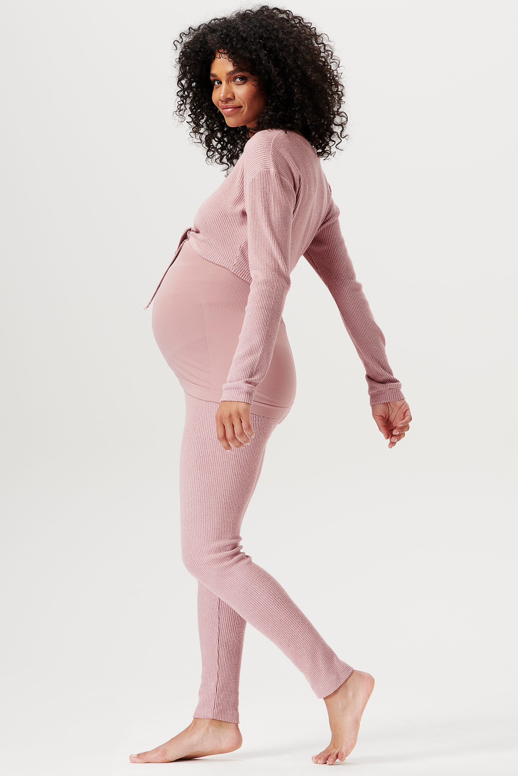 Ecovero cropped rib maternity shirt with long sleeves made of soft and sustainable EcoVero™ viscose. The shirt has a modern round neckline and falls charmingly over your chest to your baby bump. Due to the short length, your baby bump is again emphasized beautifully and has enough space to grow. You can wear the cropped shirt wonderfully over a top, dress or blouse and your look will be an eye-catcher. Also after the birth you can wear the shirt very practical over a nursing top, thanks to the discreet breastfeeding access. Color: gray