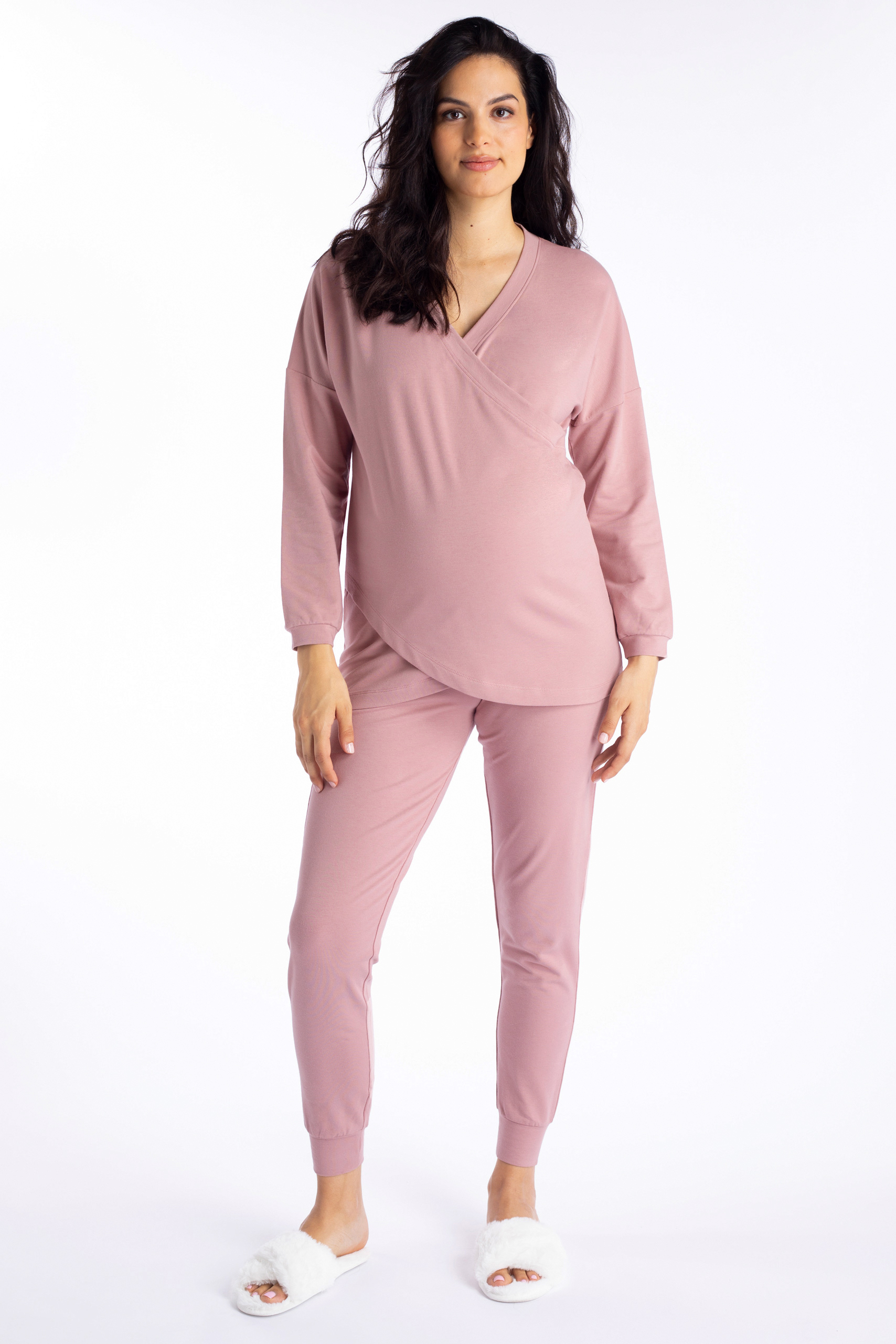 Here you will find the matching trousers: Organic Foldover Maternity Lounge and Pyjama Trousers pink