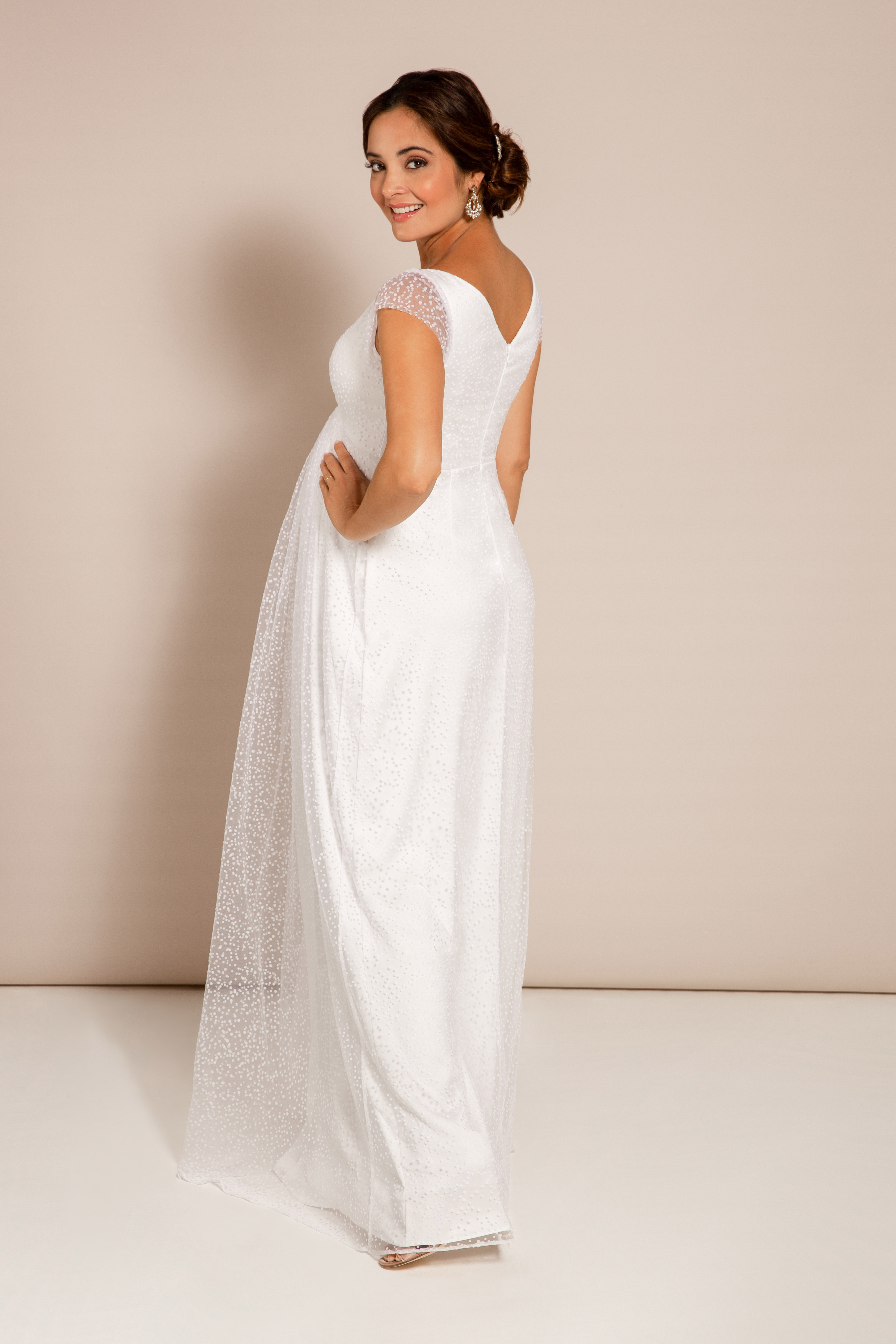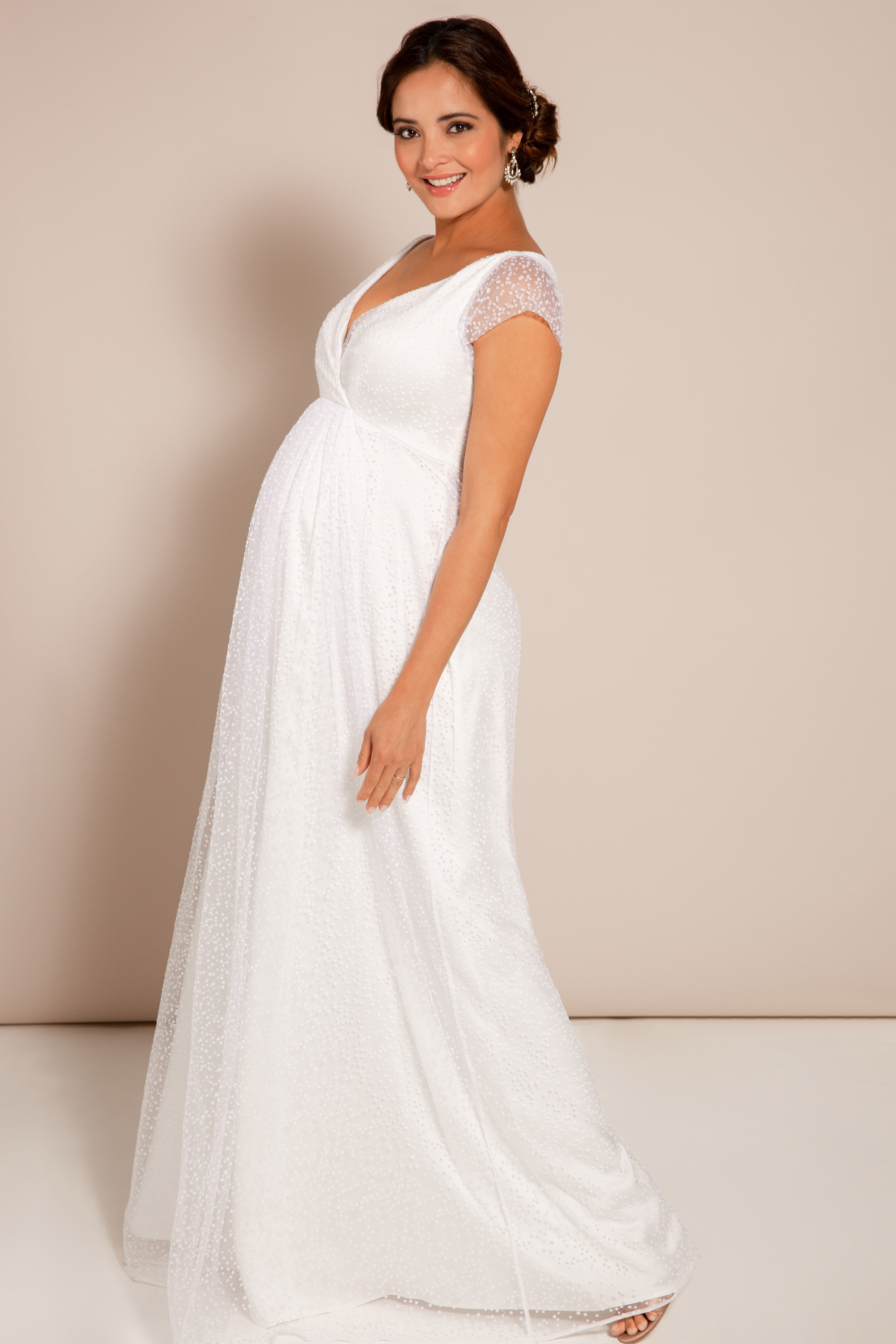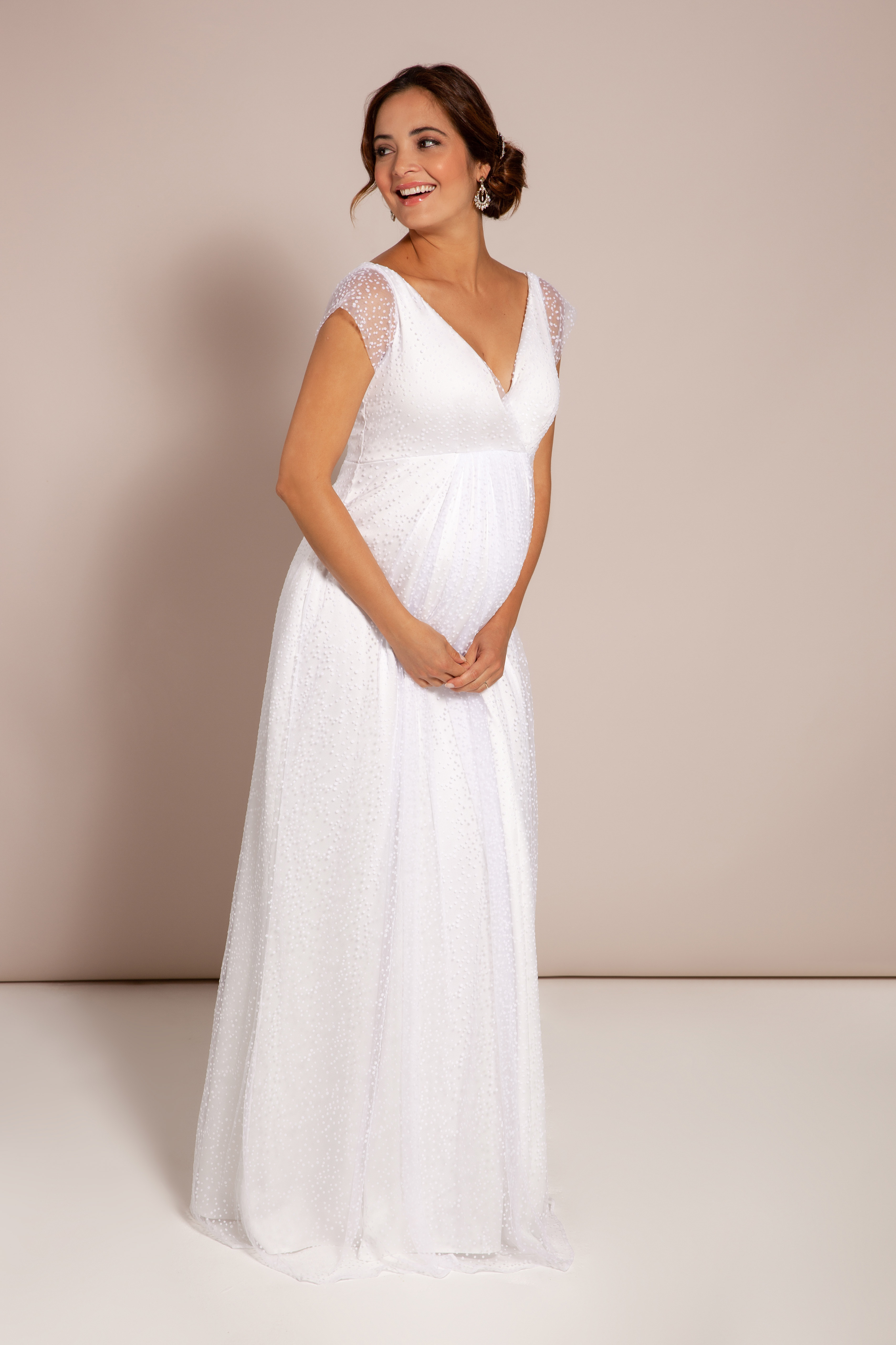 Maternity and Nursing Wedding Gown with Speckled Tull White