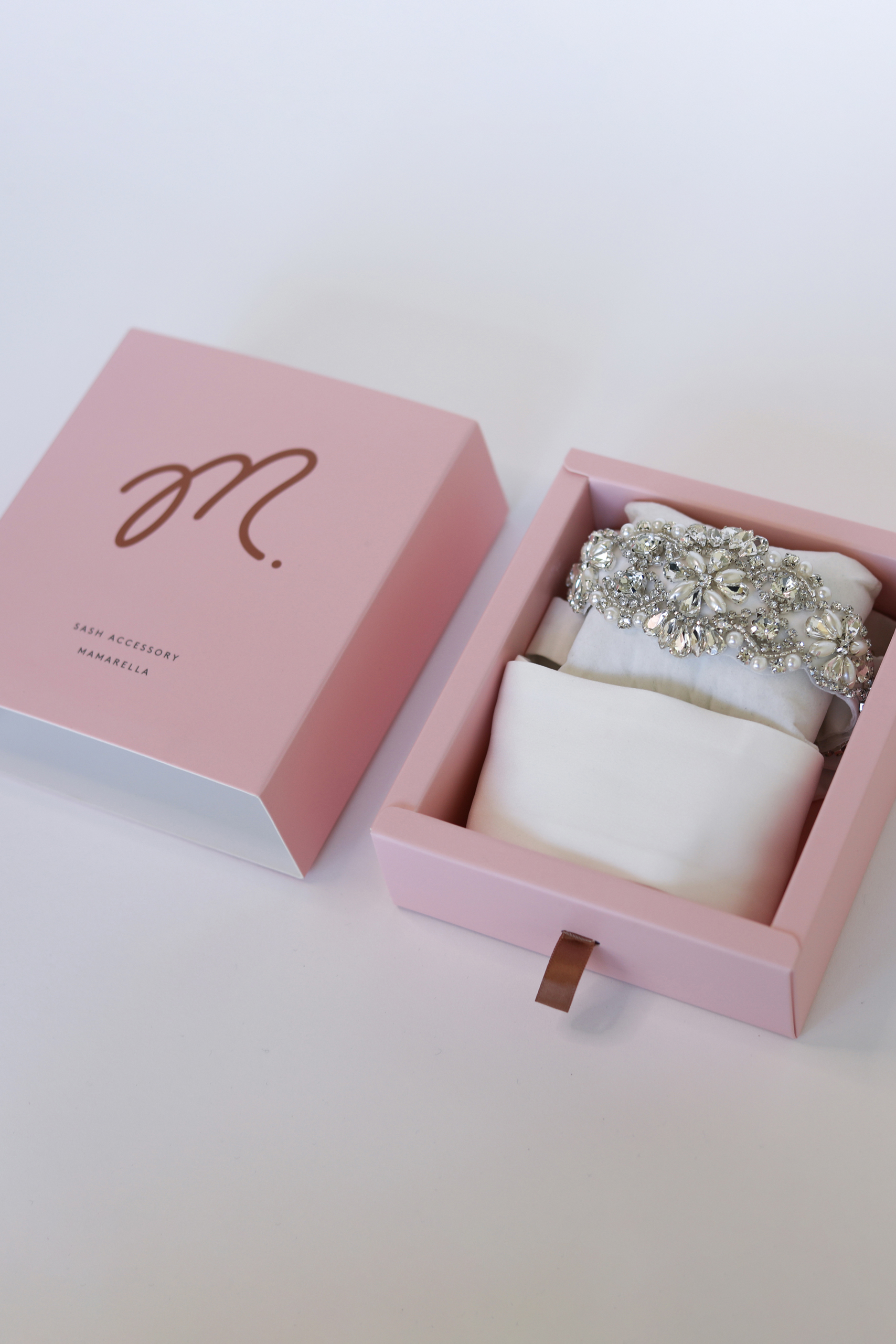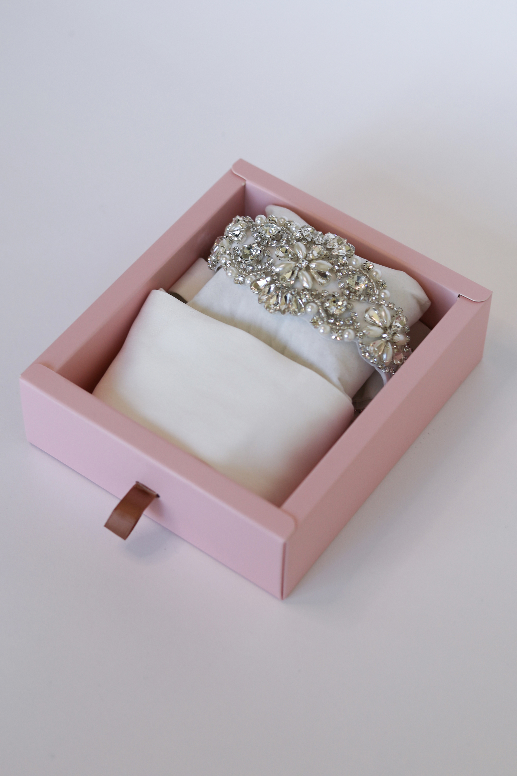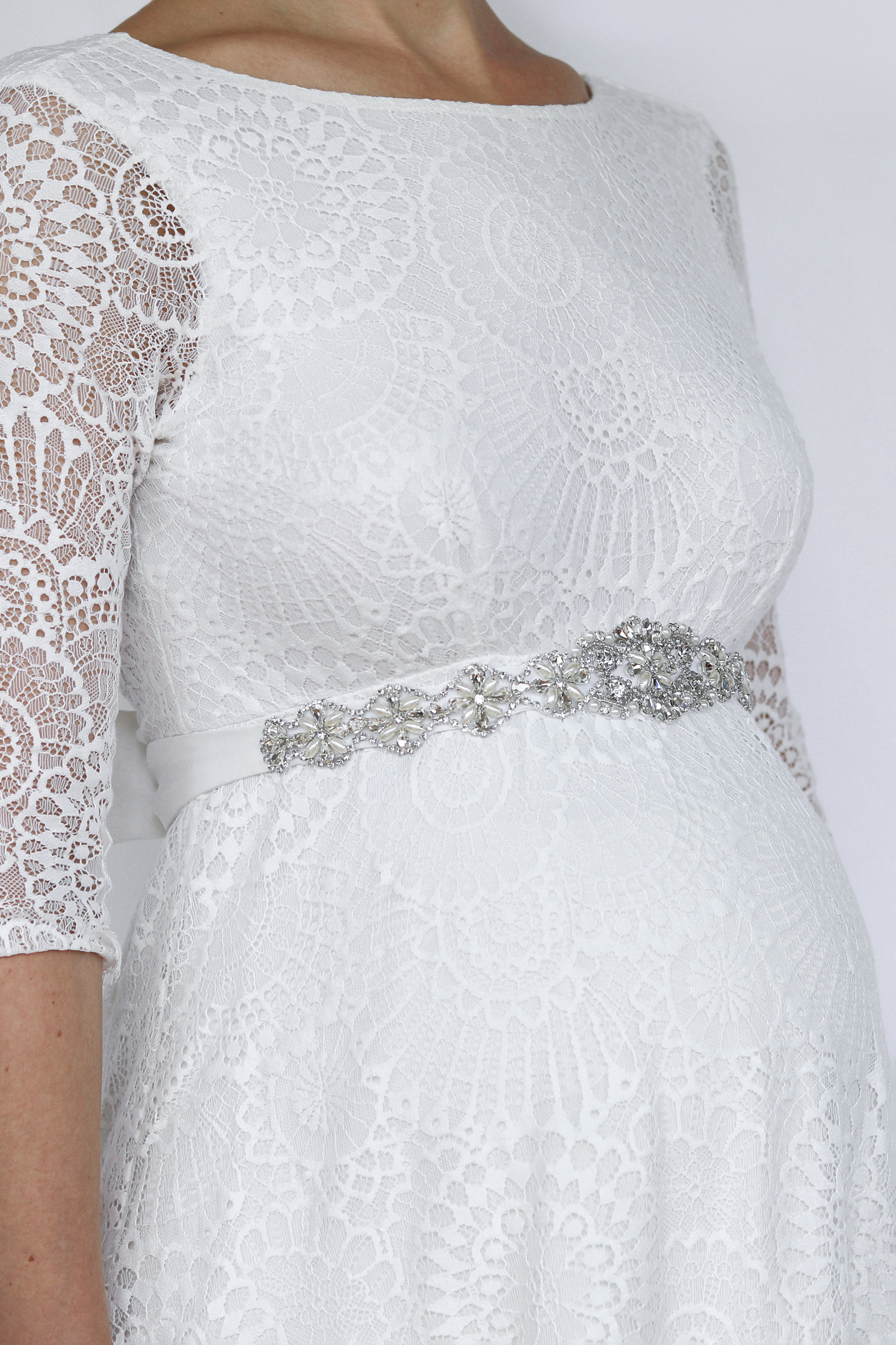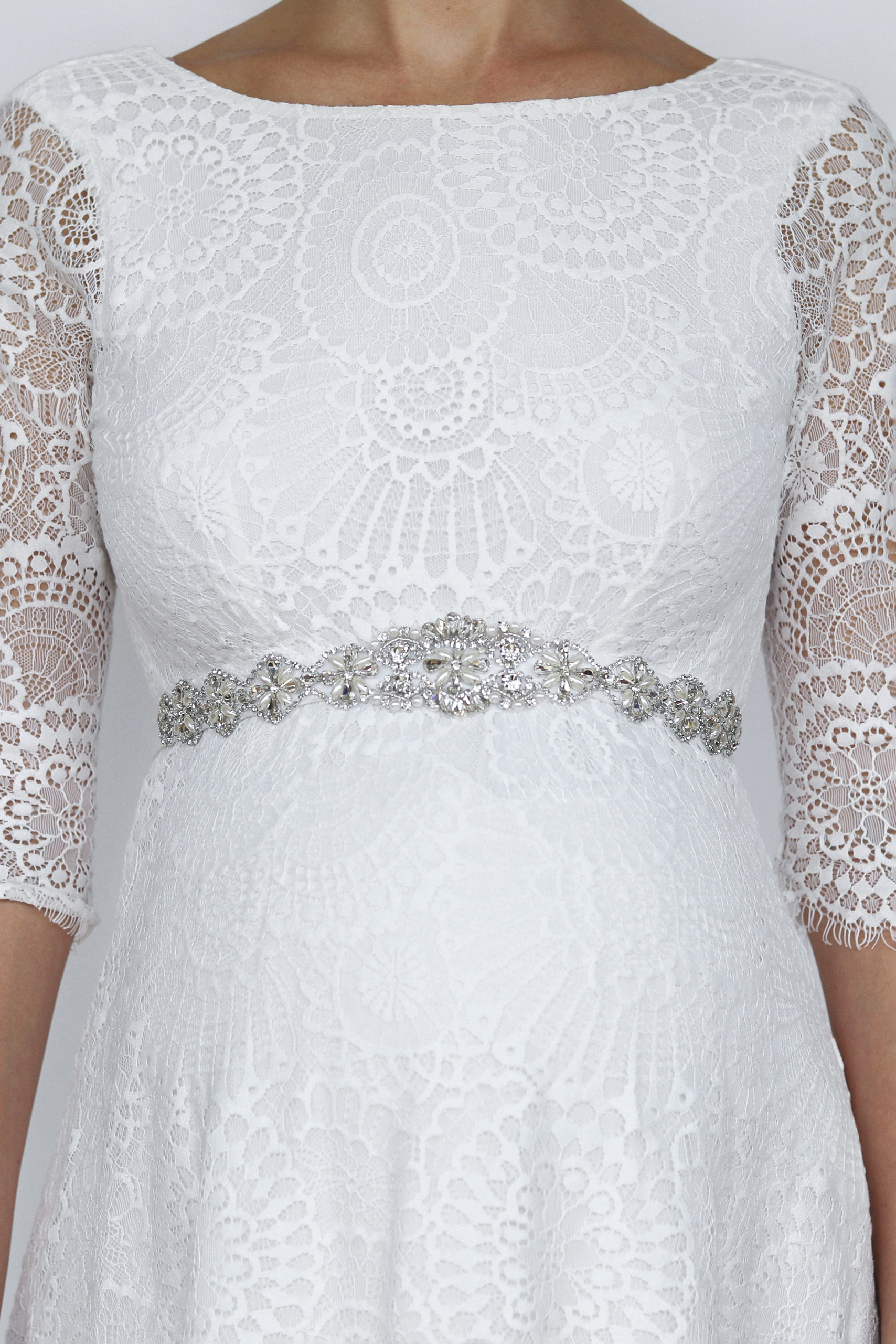 Wedding dress sash in vintage design to advantageously emphasize your empire line. The eye-catching sash embroidered with gemstones provides a special eye-catcher on your big day. Color: ivory