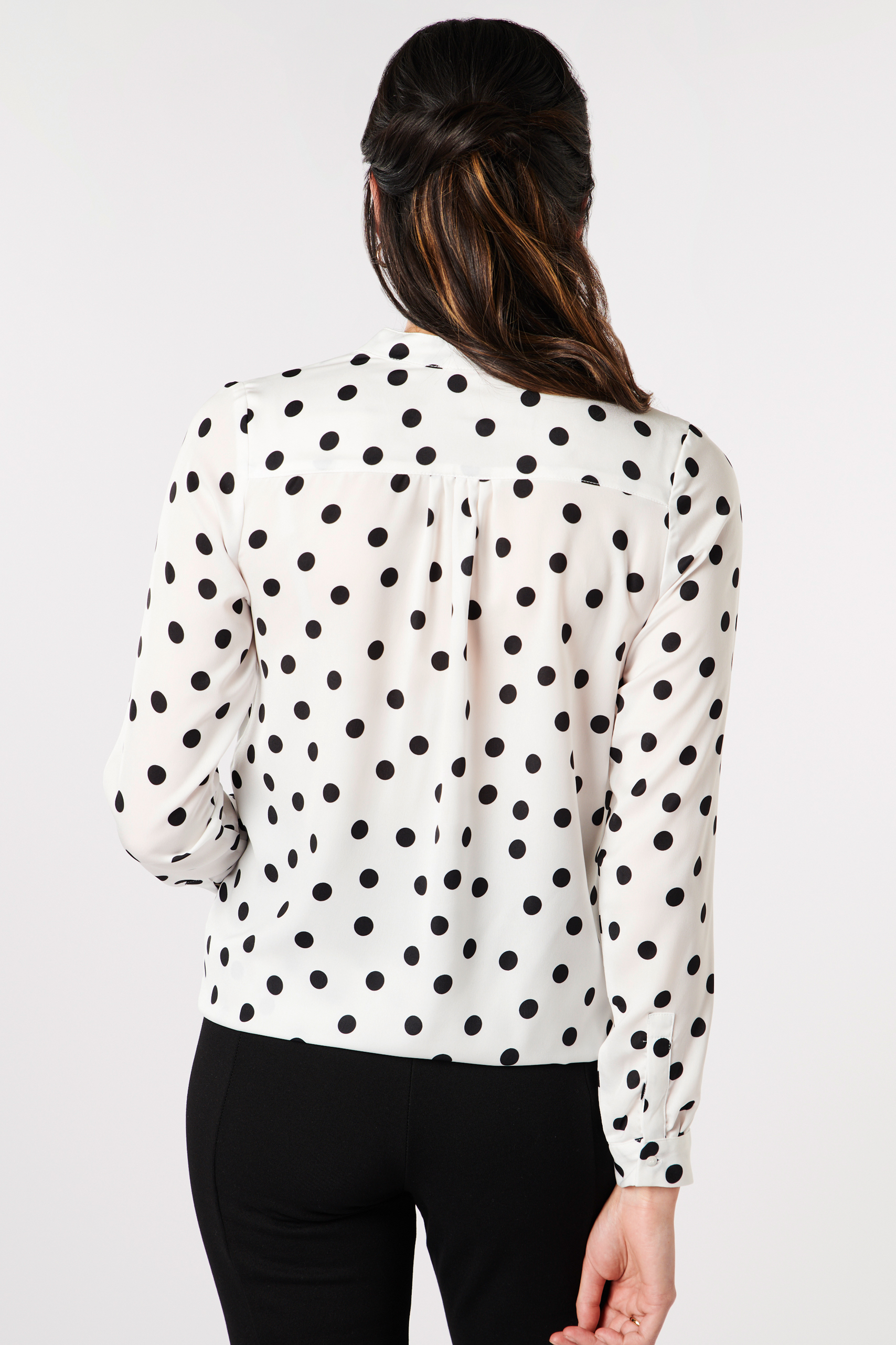 Maternity and nursing blouse in cross-over design with small gathering details, stand-up collar and button cuffs on the sleeves. Thanks to the elastic waistband, the blouse adapts to your figure and growing belly. After pregnancy, the special design offers you breastfeeding access. For this purpose, the crossed fabric layers can be pushed aside and the breastfeeding access is underneath. Colour: black/white