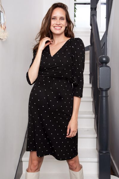 The classic among the nursing dresses is the wrap dress. The special neckline offers the ideal conditions for breastfeeding. The layers of fabric can simply be pushed aside to give you direct access to the breast. Thanks to the wrap look, you won't even notice that the maternity dress is not only stylish but also has a practical function.