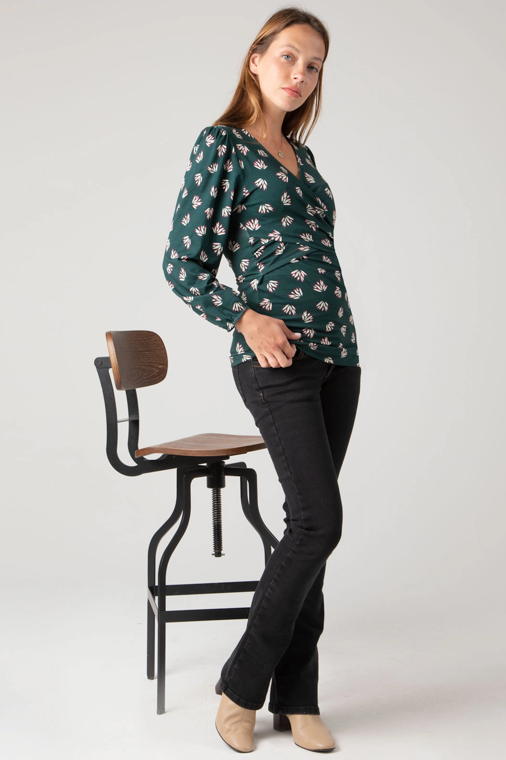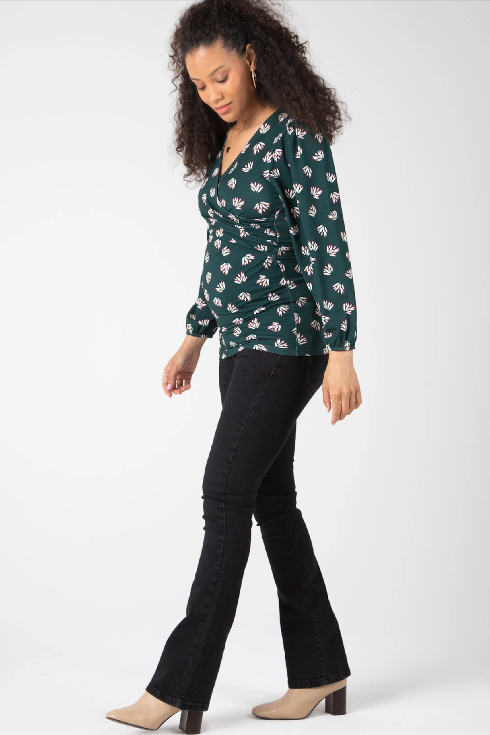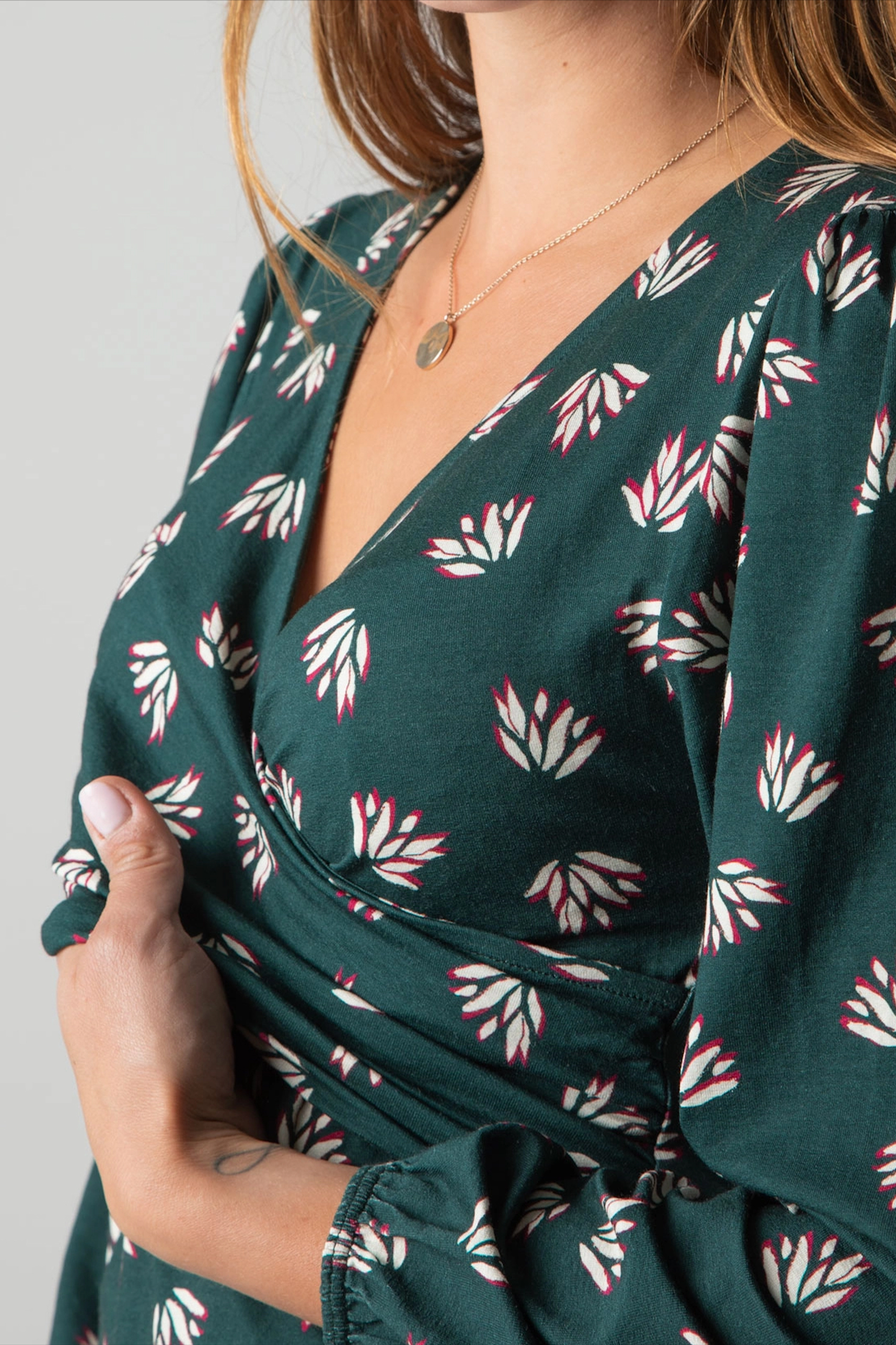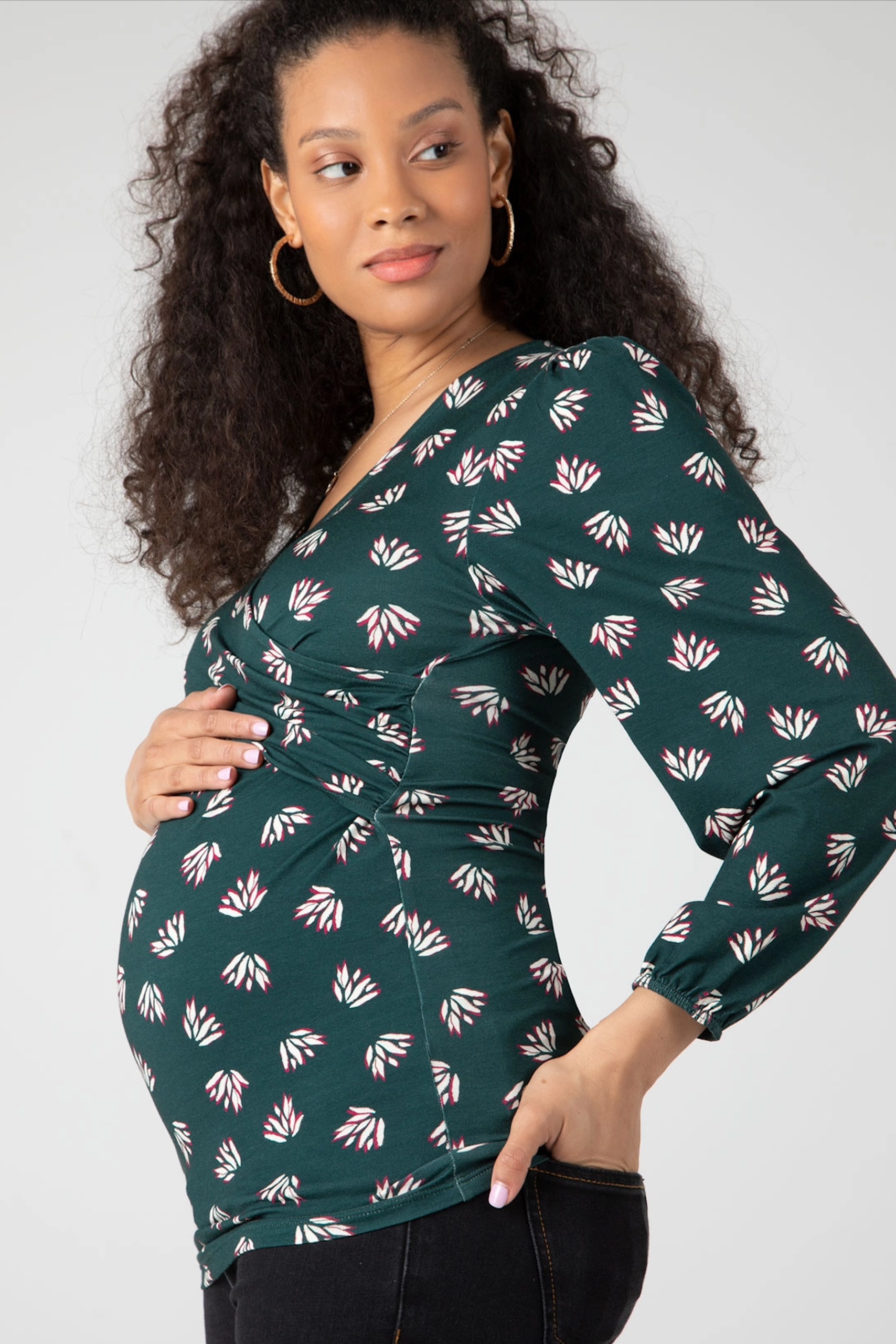 Cross-over Maternity and Nursing Shirt with Lotus Print