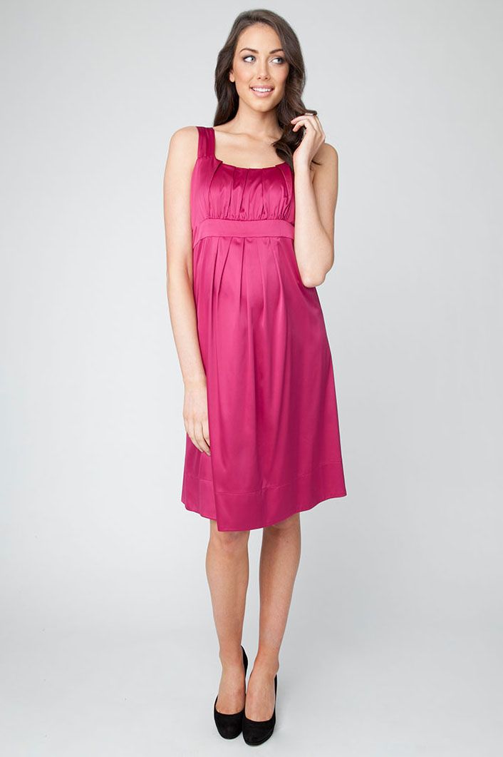 Umstandskleid mit breiten Trägern, Rundhalsausschnitt und Plissees an der Empire Line sowie dem Bustier. Farbe: berry